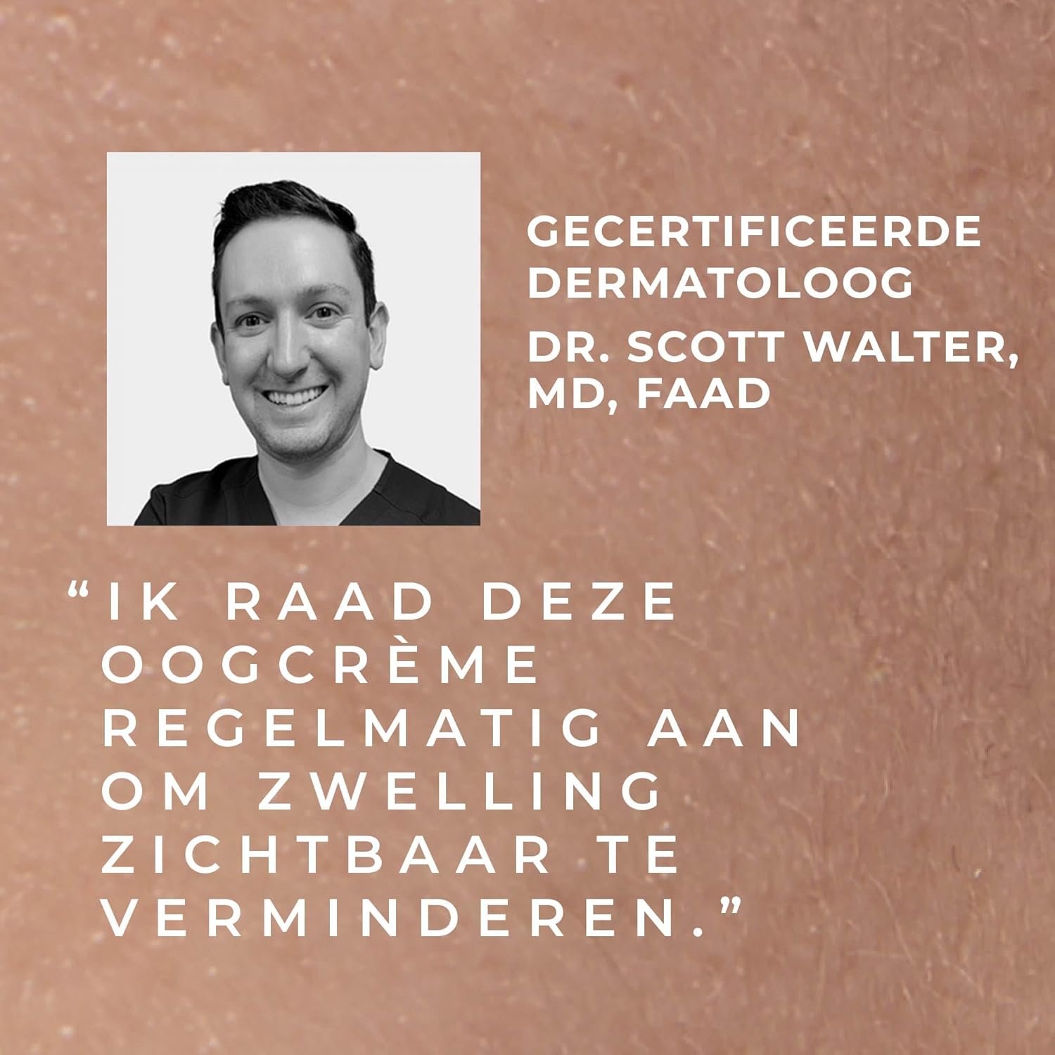 Tegelijkertijd liften en verstevigen peptiden de oogcontour zichtbaar, terwijl cafeïne wallen doet vervagen en verzachten