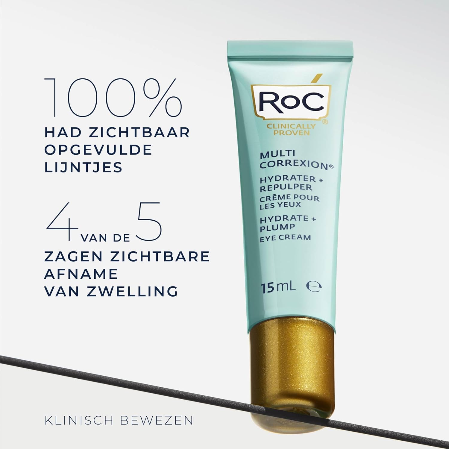 RoC Multi Correxion Hydrate + Plump Oogcrème is speciaal ontwikkeld voor de gevoelige huid rond de ogen die het eerst haar volume verliest