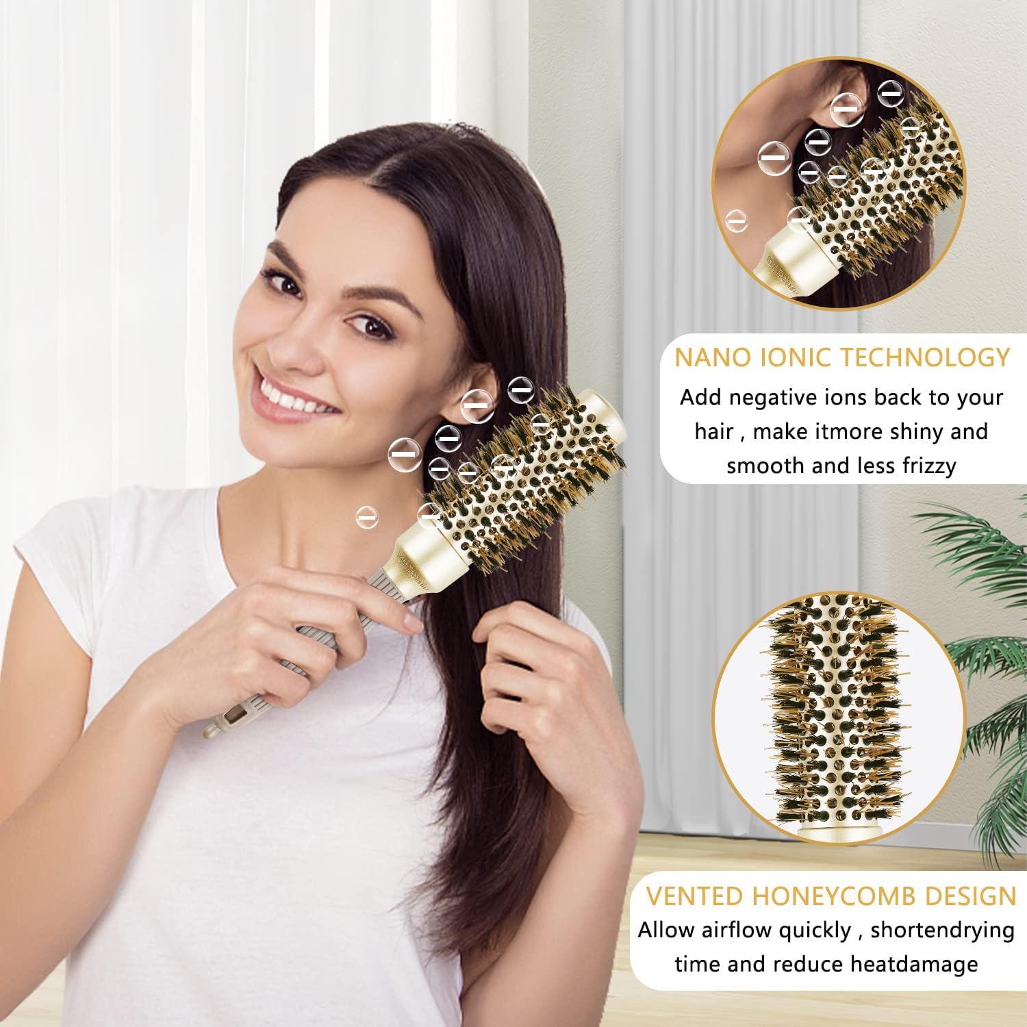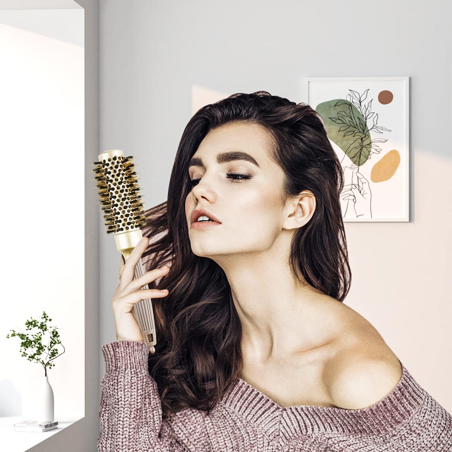 Blaas en styling van salonkwaliteit: het styling- en droogproces wordt geholpen zonder schade aan je haar te veroorzaken door het geventileerde keramische vat van de ronde haarborstel voor föhnen. Afhankelijk van uw wens kan onze ronde zwijnharen haarborstel rechttrekken, volume toevoegen, golven creëren of krullen genereren. Koop het nu en geniet thuis van salonkwaliteit haar, het is ideaal voor alle haartypes en kapsels.