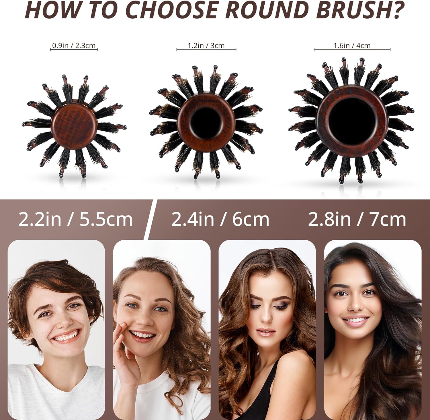 Ronde borstel voor dames om te föhnen, glad te maken, stylen, borstelborstel, ronde borstel om te föhnen, ronde haarborstel geeft glans en volume