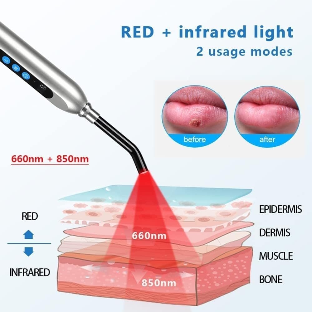 Roodlichttherapie-instrumentpen 2 in 1 lichttherapie Koortslipapparaat Infrarood voor behandeling van lipkanker Pijnverlichting Spier, rug, knie, schouder