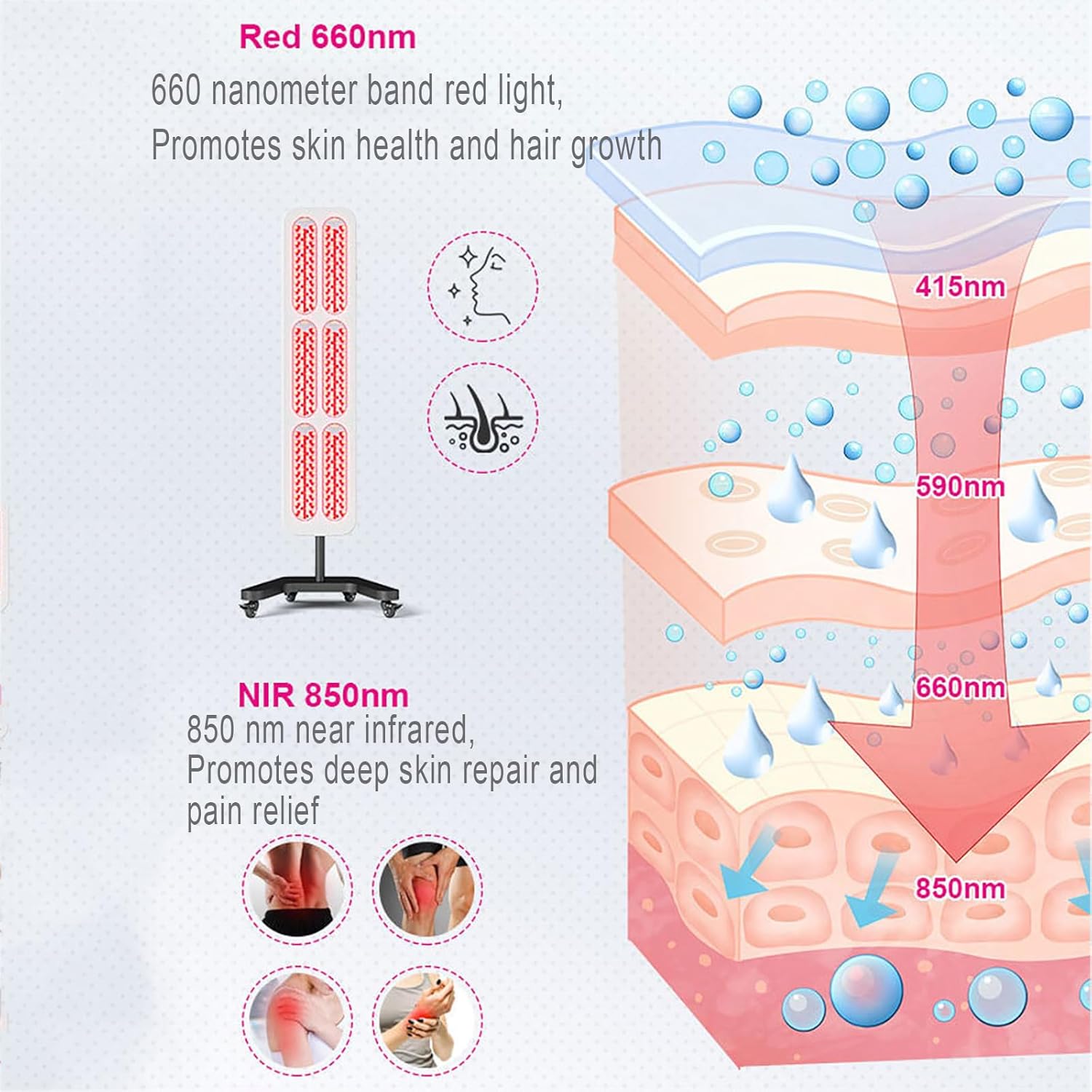 Roodlichttherapieapparaat, therapie, nabij-infrarood led-rood licht met standaard en tijdfunctie, 660 Nm en dicht infrarood licht 850 Nm, 4 modi instelbaar, voor het verlichten van lichaams- en