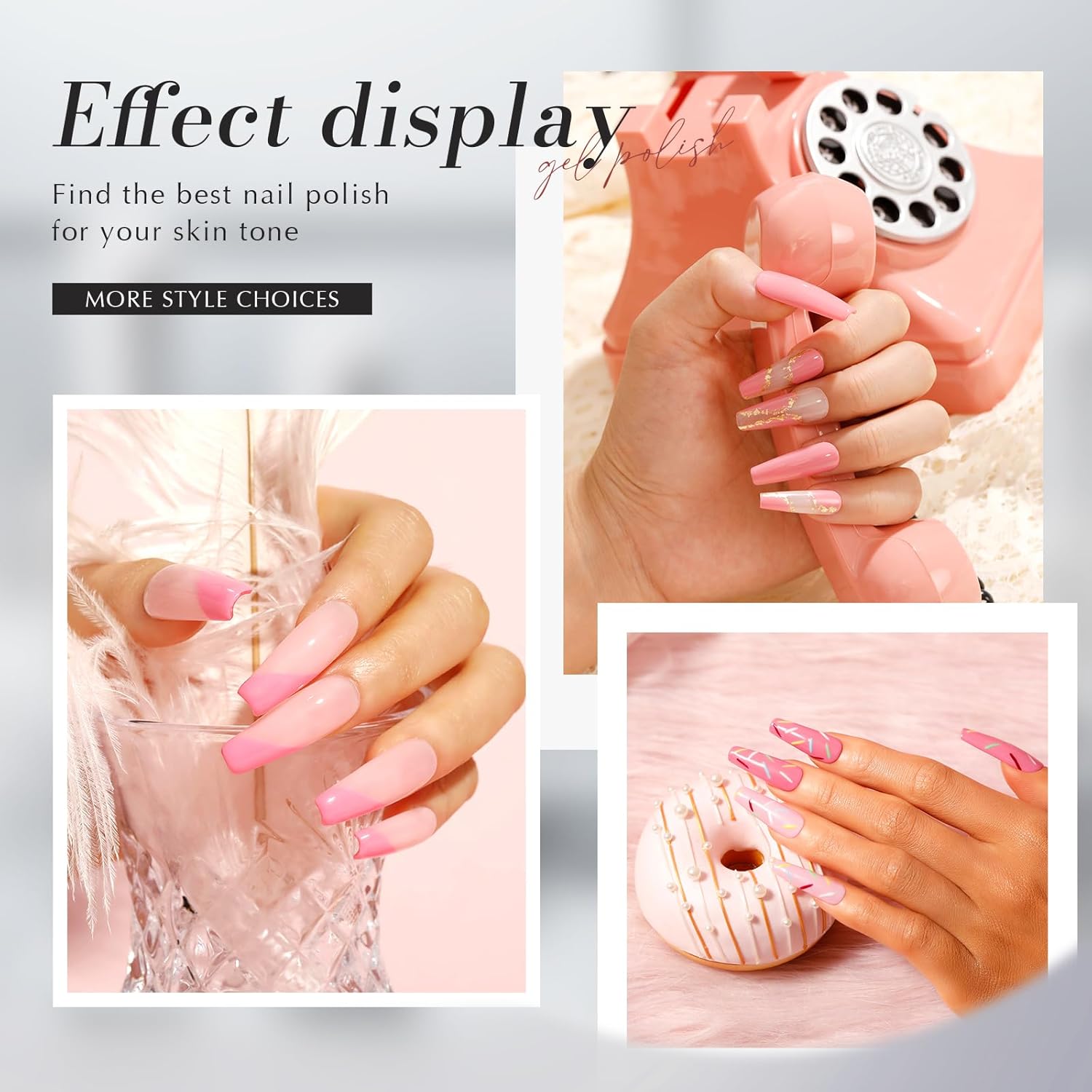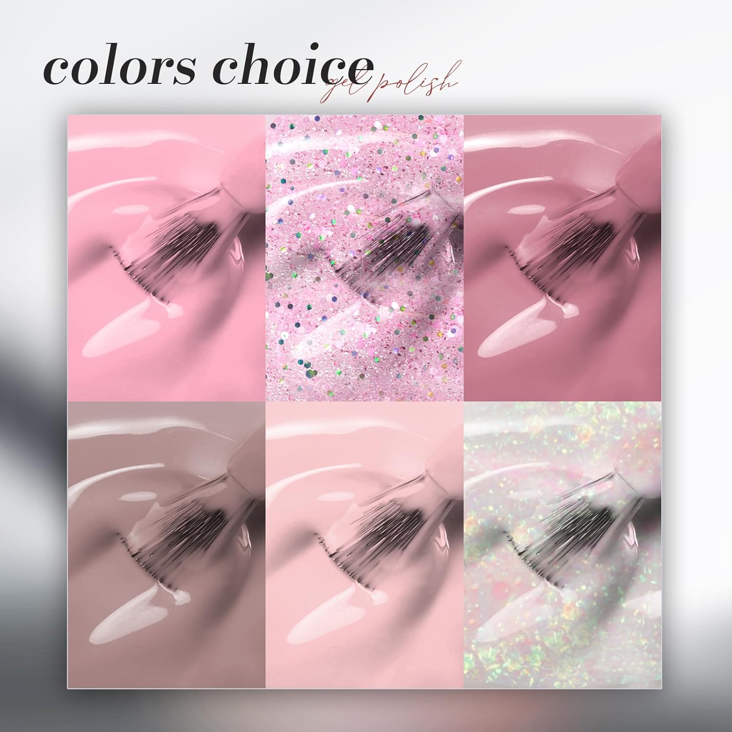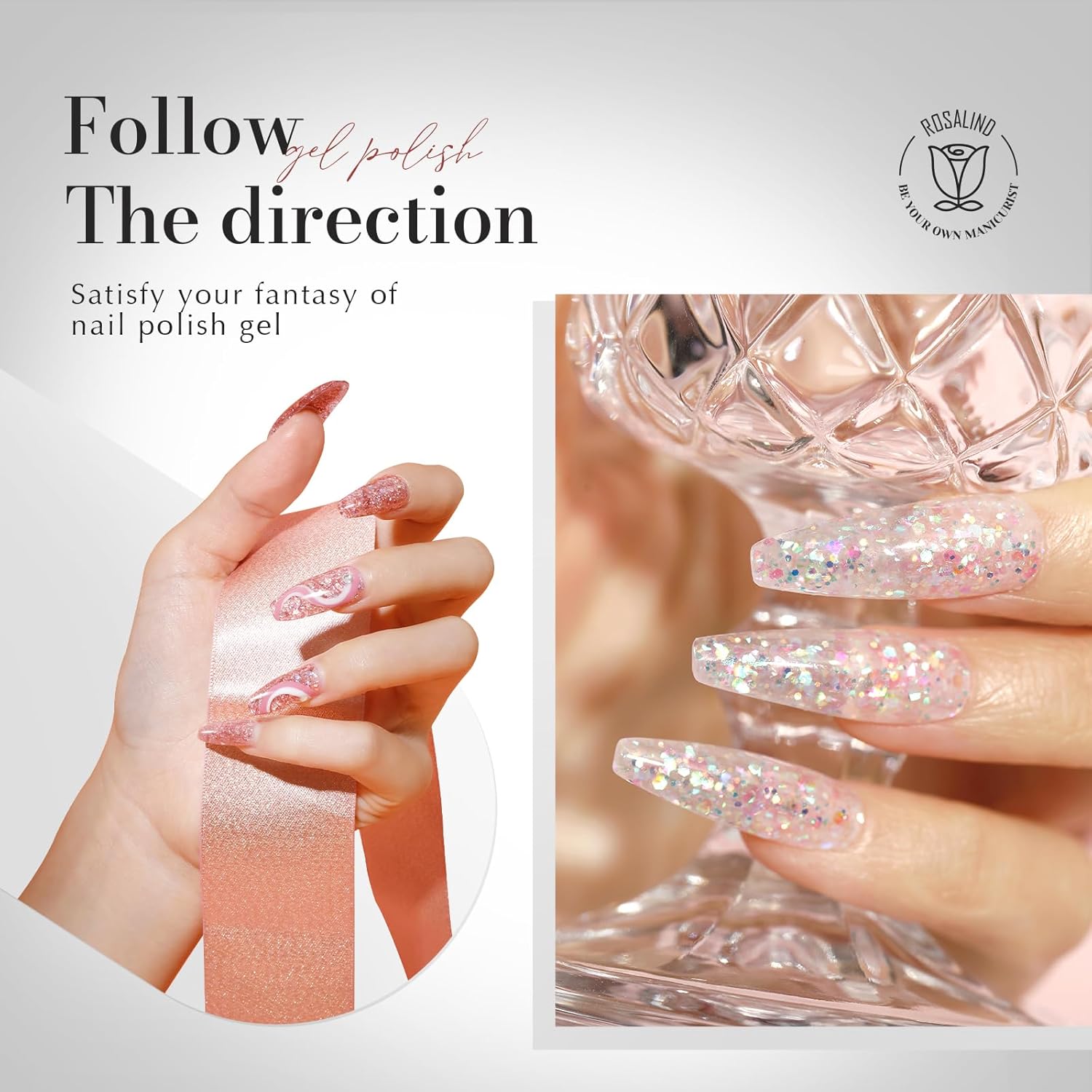 ROSALIND Gel Nagellak Set Roze Glitter Wit Kleur, Soak Off UV LED Gel Polish Kit 6PCS, Gelnagel Starterset Manicure Nail Art Kit Professionele