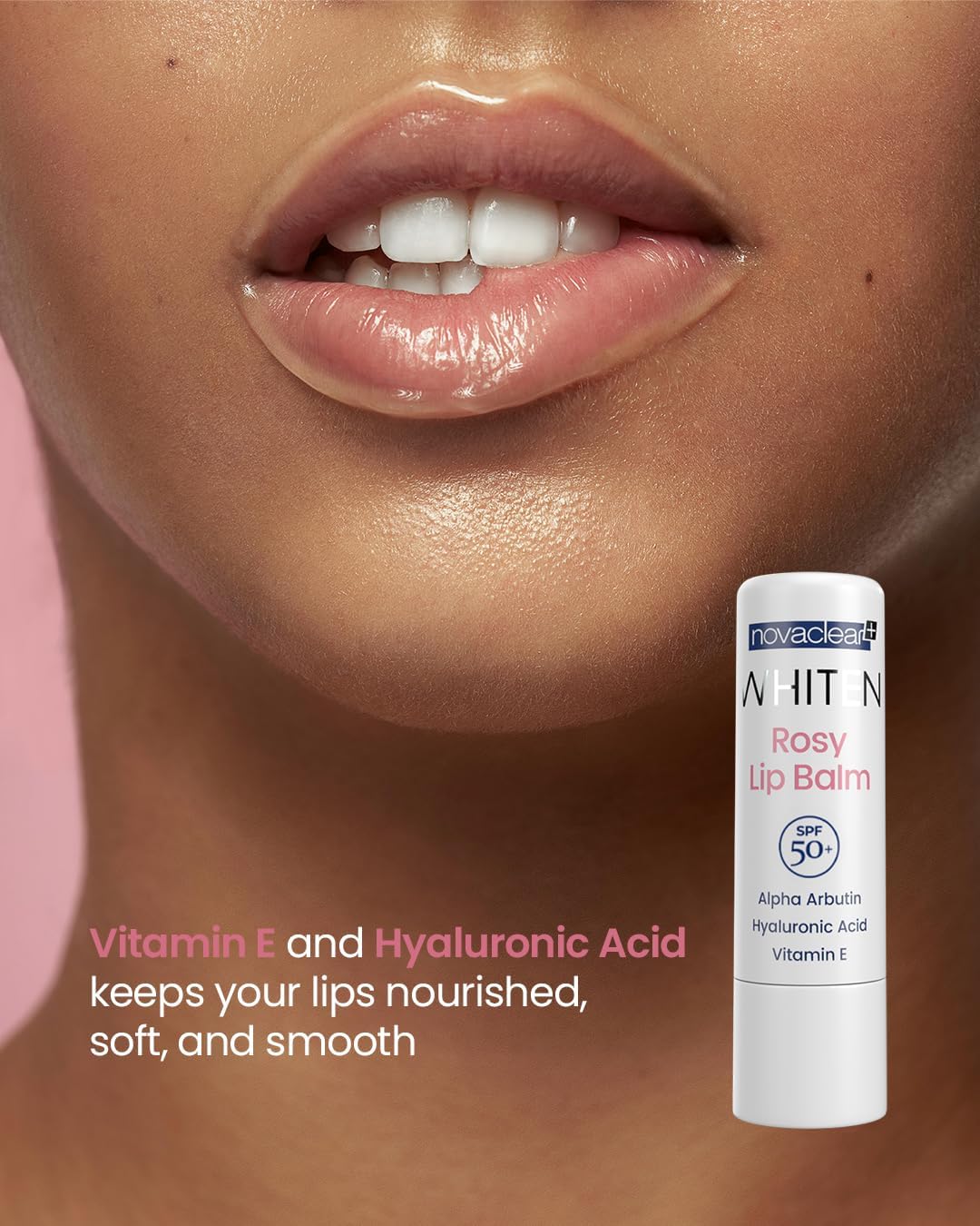 MoisturizinLip Lightening with Alpha Arbutin: Novaclear Rosy Lip Balm bevat Alpha Arbutine, een krachtig ingrediënt dat bekend staat om zijn huidverlichtende eigenschappen. Alpha Arbutin helpt pigmentatie te voorkomen en voorkomt het donker worden van uw lippen. g Lippenbalsem Whitening & Brightening
