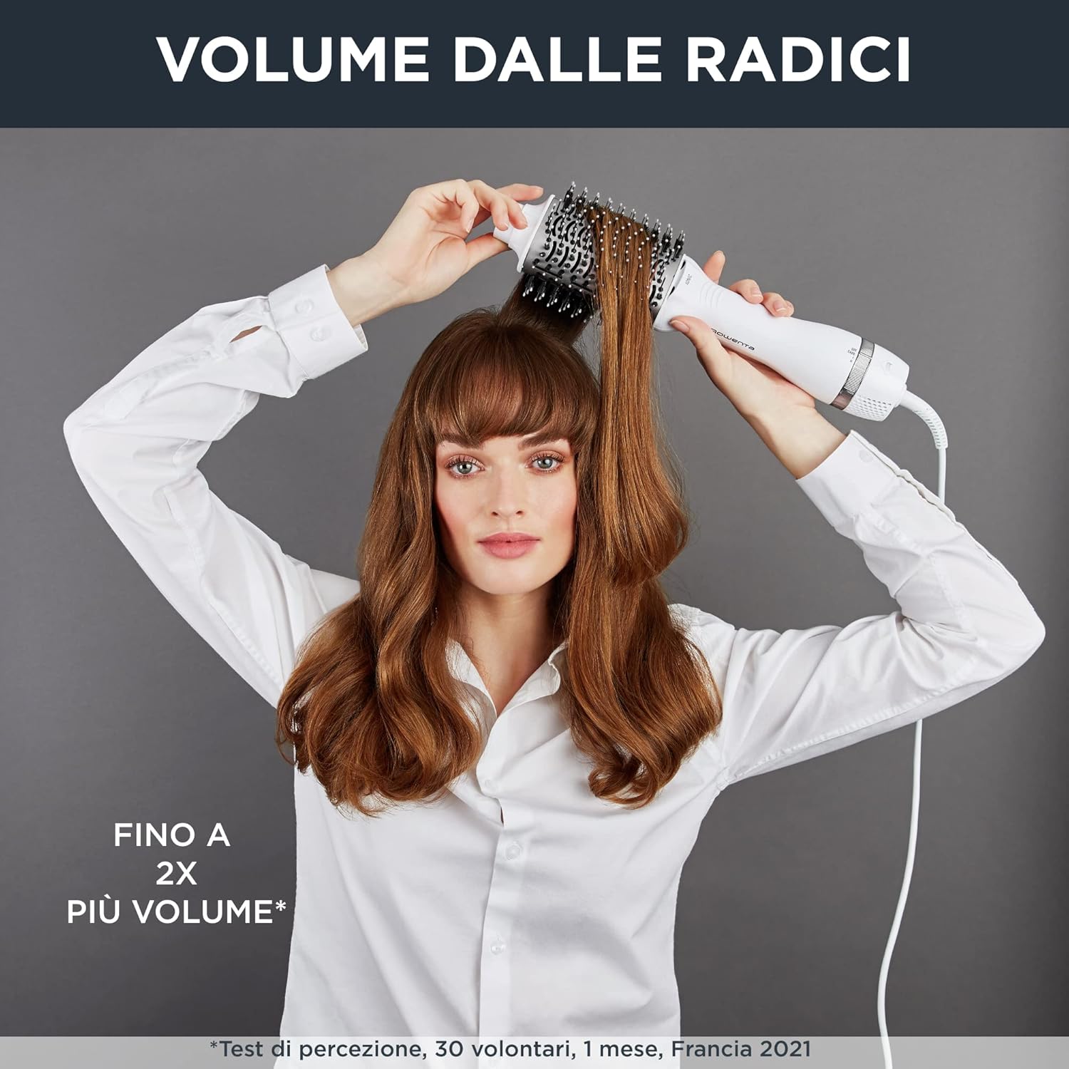 De Rowenta Volumizer verwarmingsborstel biedt drievoudig drogen en vormen voor een glamoureuze look en een buitengewoon volume, dag na dag. De 3D Volume Booster-technologie combineert een sterke luchtstroom met een net van natuurlijke noppen en borstelharen om de wortels los te maken en je haar meer lichaam te geven. De ovale XL-borstel stylt je haar tijdens het drogen en geeft het een natuurlijk volume van de wortels tot aan de punten. Met deze krachtige borstel kun je een ongelooflijk volume bereiken en je haar een stralende glans geven.