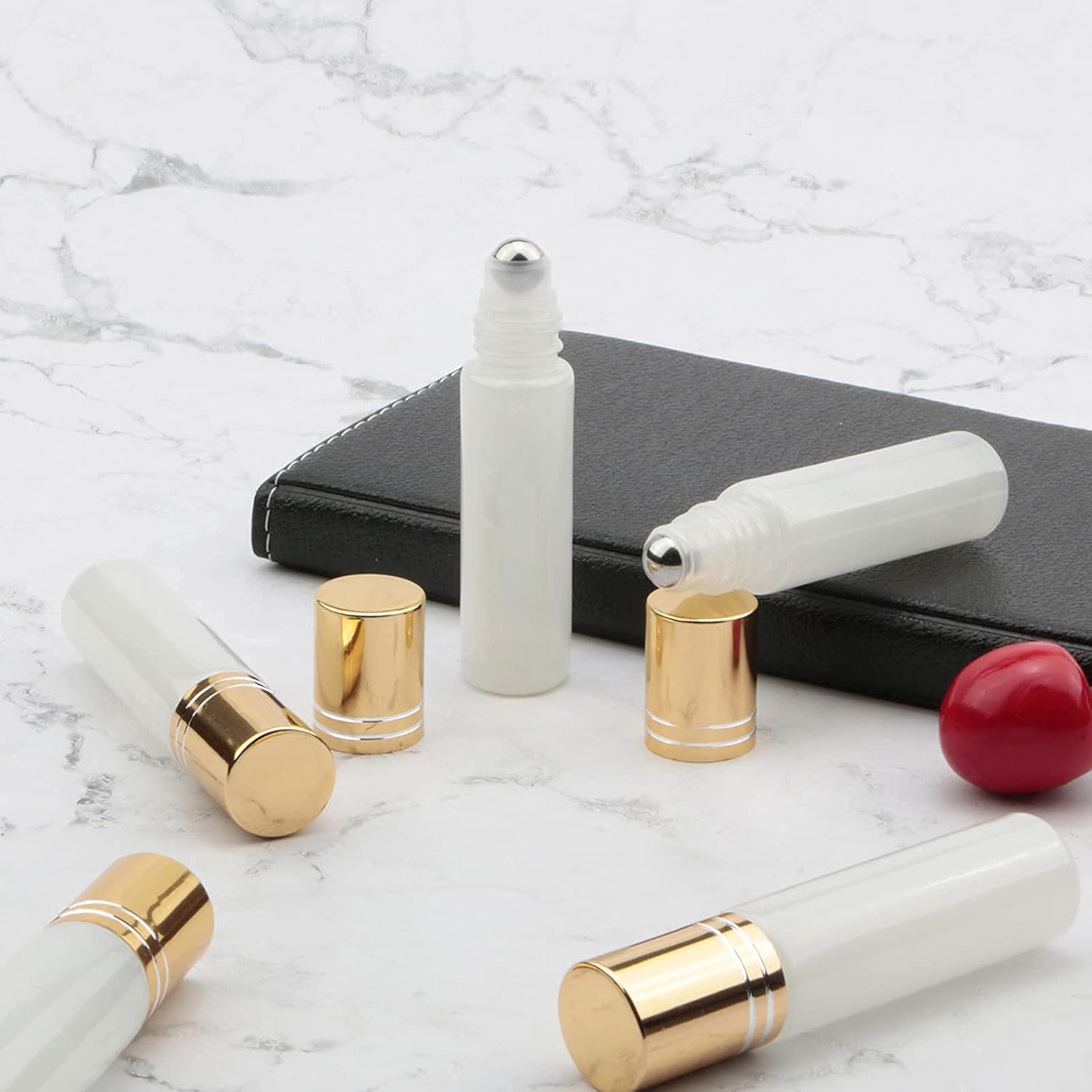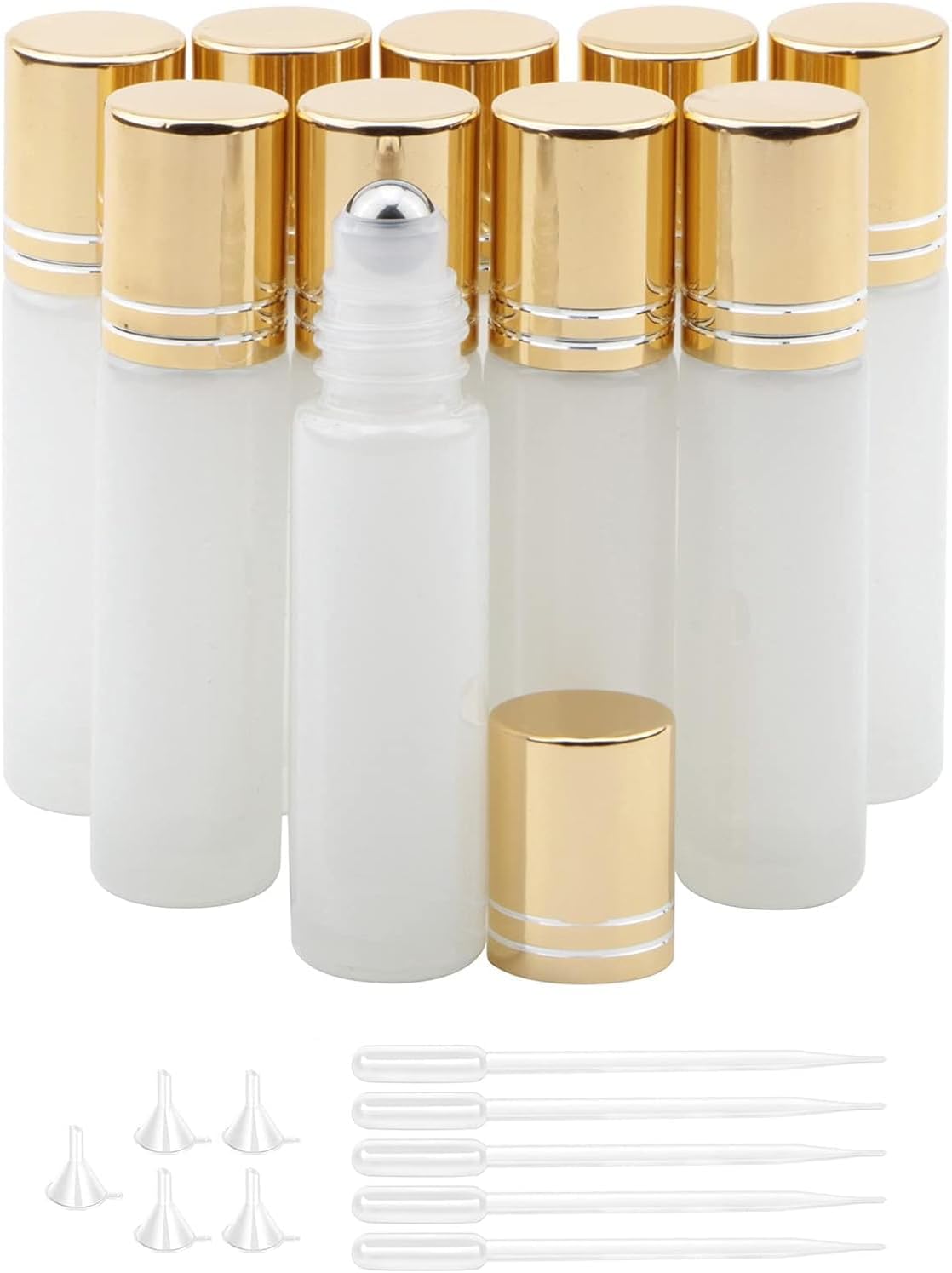 Rowiz 10 stks Essentiële Oliën Roll op Flessen,10 ml Hervulbare Lege Glazen Rollerball Flessen met Gouden Dop, Perfect voor Zelfgemaakte Parfum Geuraromatherapie Oliën, Pearly Wit