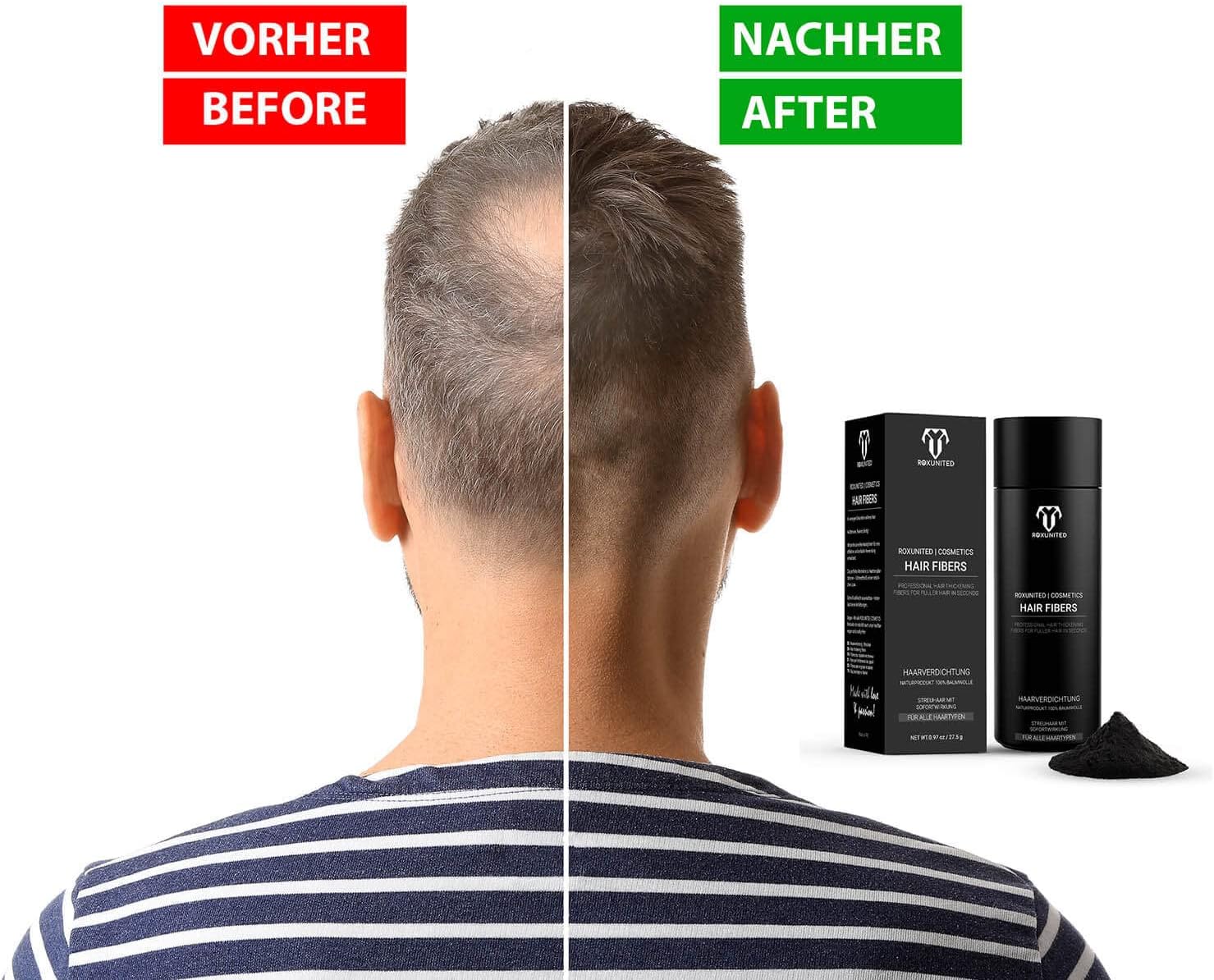 Het haarpoeder dekt direct na het aanbrengen geheime hoeken en lichte plekken optimaal af. Er ontstaat een prachtig haarvolume, dat er volledig natuurlijk uitziet. Het is een natuurlijke haarvulling, die in talrijke strooihaartests al volledig kon overtuigen. Het hoeft niet altijd een haartransplantatie te zijn, want met de haarverdichter in verschillende kleuren kan hetzelfde effect worden bereikt.