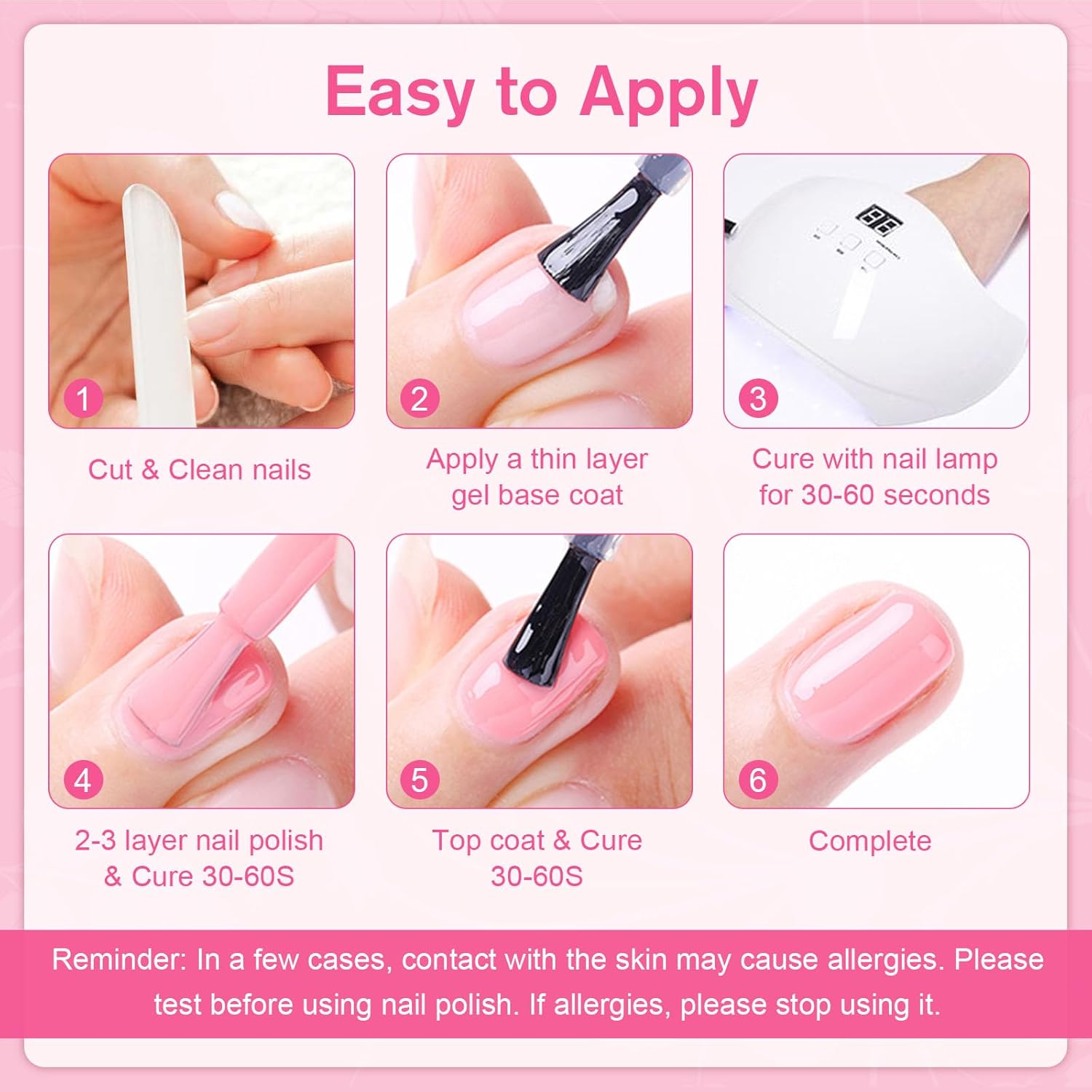 Roze Gel Nail Polish,6 Farben Glitter Roze Melk Wit Perzik Zomer Gel Nagellack Soak-Off UV Nagellack Set voor Beginners DIY Nail Art at Home, 8ml