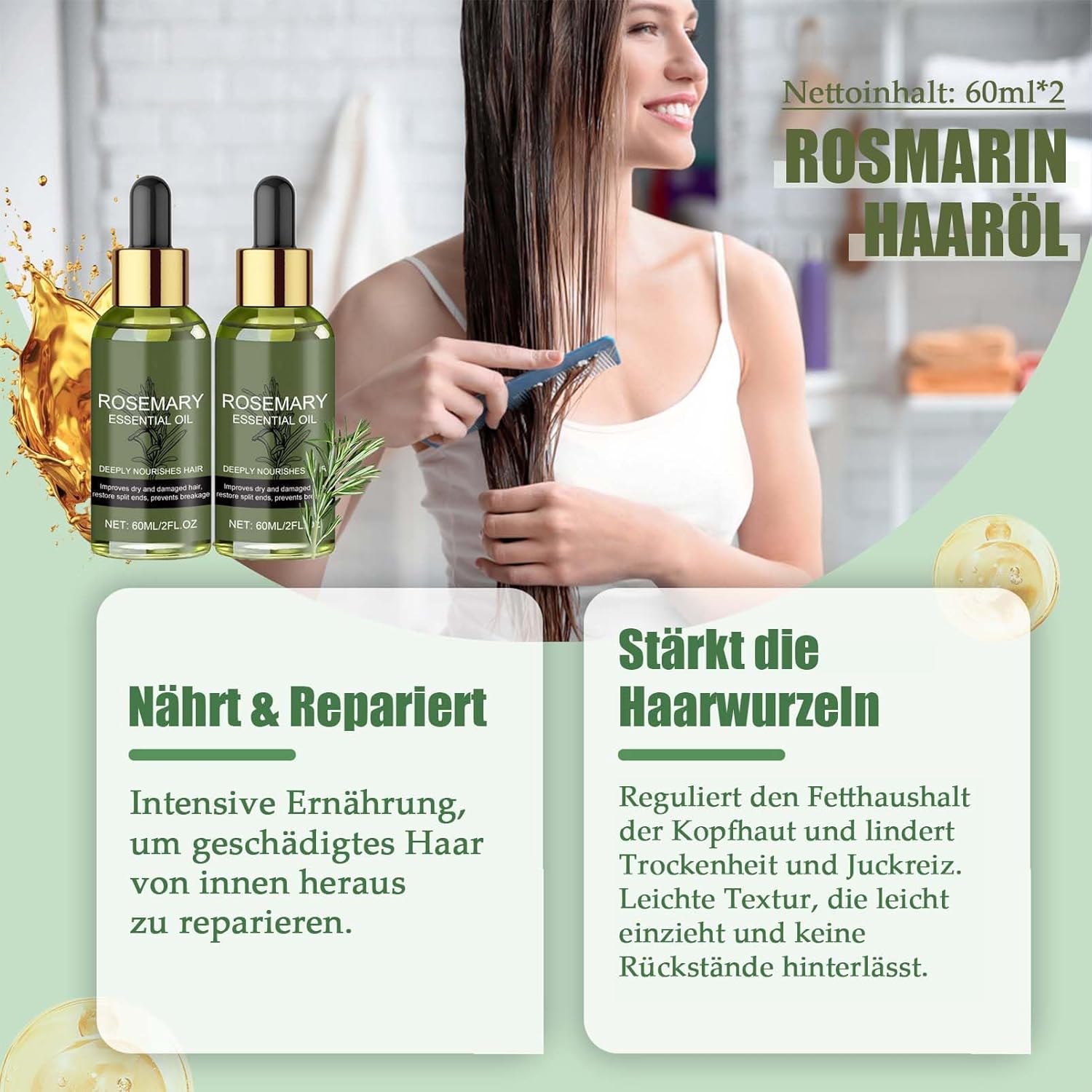 Rozemarijn haarolie, 2 stuks, gestimuleerd haargroei met rozemarijnolie voor haar en hoofdhuid, biotine haarolie tegen haaruitval, rozemarijnolie voor dunner/droog haar, rozemarijnolie haar voor