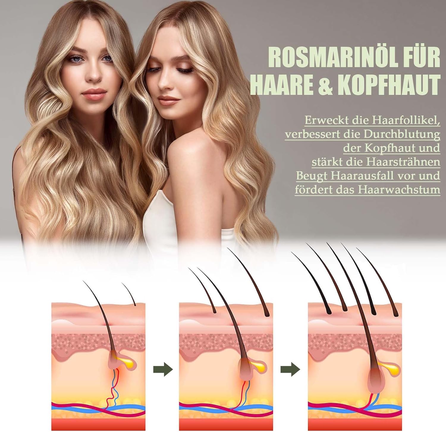 EONFAVE 2 stuks rozemarijnolie voor haar en hoofdhuid, 100% natuurzuivere rozemarijnolie voor huidverzorging, stimuleert de haargroei voor vrouwen en mannen, tegen haaruitval