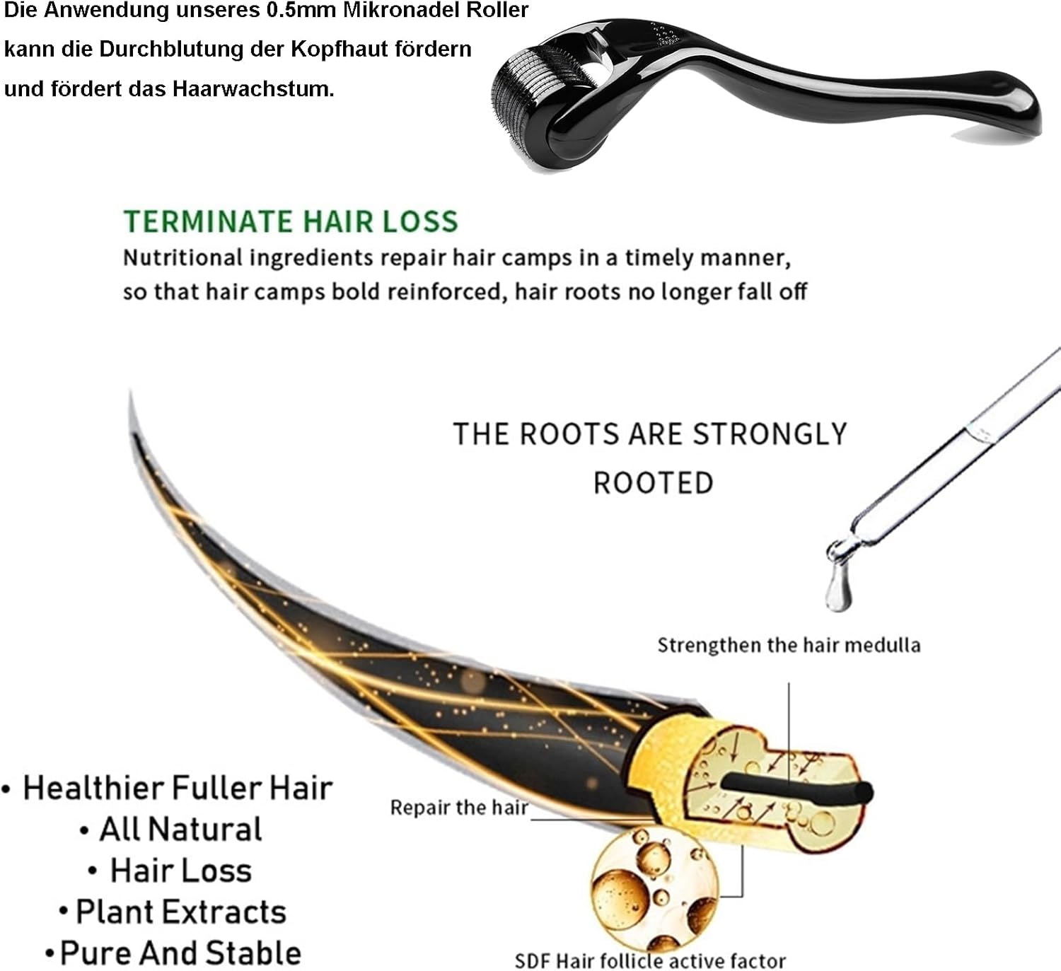 Rozemarijnolie haarset met derma-roller, 0,5 mm, haargroeiserum, rozemarijnolie haargroei versnellen, anti-haaruitval, haargroeiserum, rozenmary olie voor haargroei