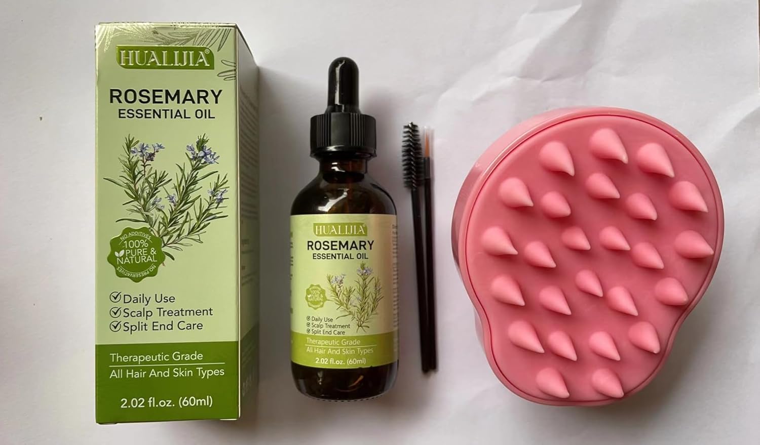 The order well packed. Oil smells well. The Brush is pleasant to use on head. Still don’t know the quality of the oil, but hope it will be efficient.