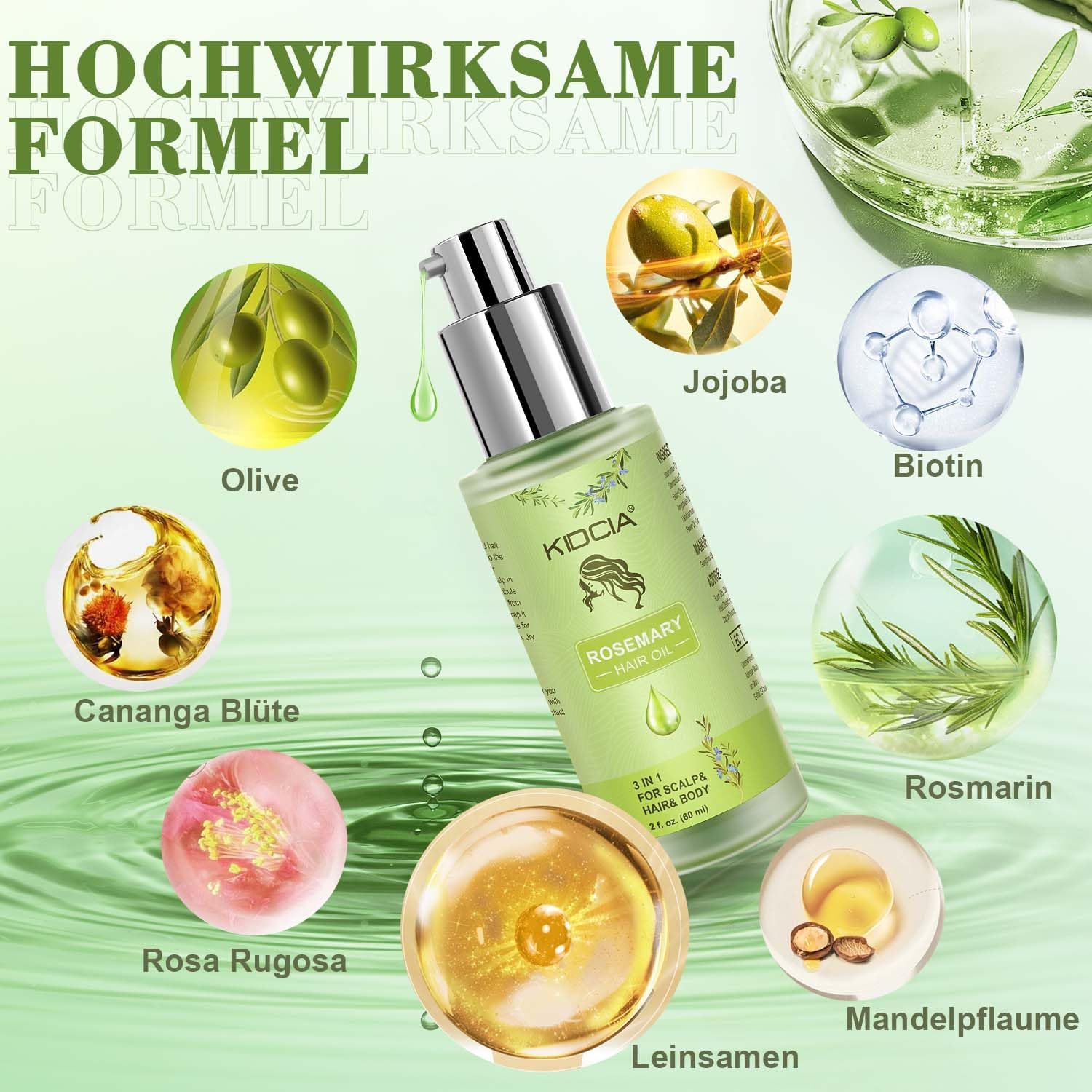 🌿 Effectieve formule: onze haarolieformule met 100% natuurlijke ingrediënten, inclusief rozemarijnolie, jojoba-olie en meer, versterkt en bevordert de haargroei.