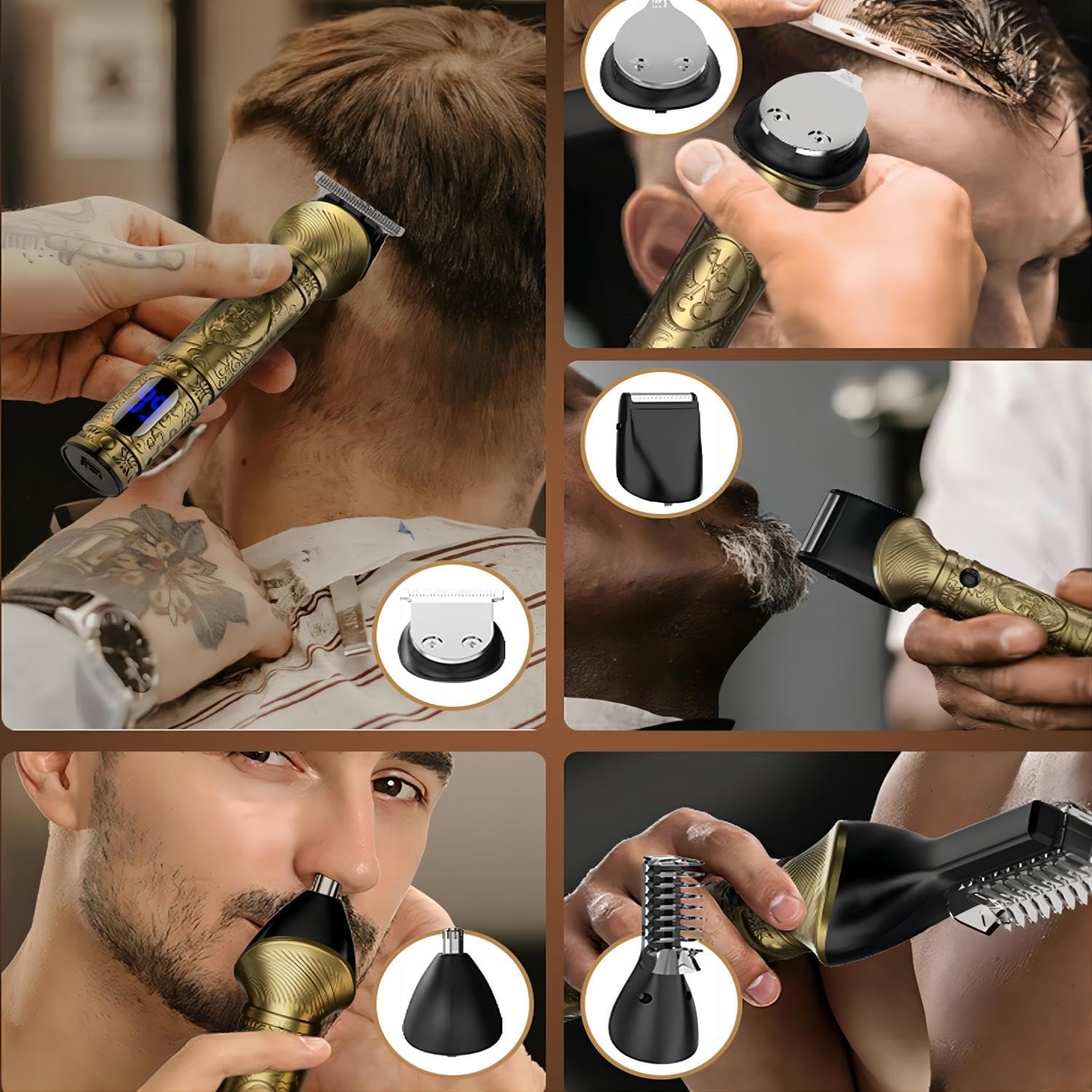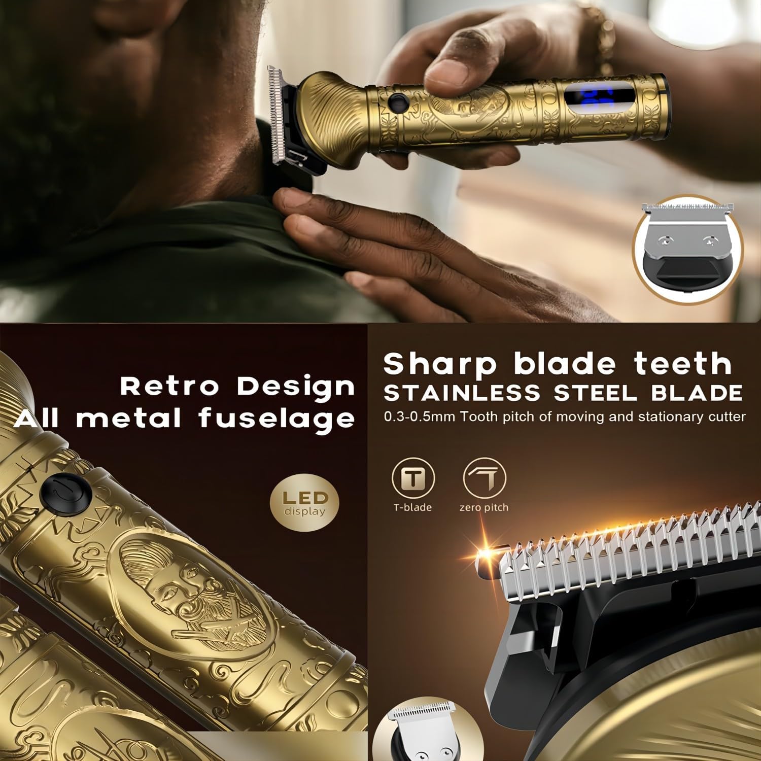Roziapro Professionele tondeuse voor heren, 6-in-1 tondeuse, verzorgingsset, draadloze baardtrimmer voor mannen, USB-oplaadbaar, led-display (goud)
