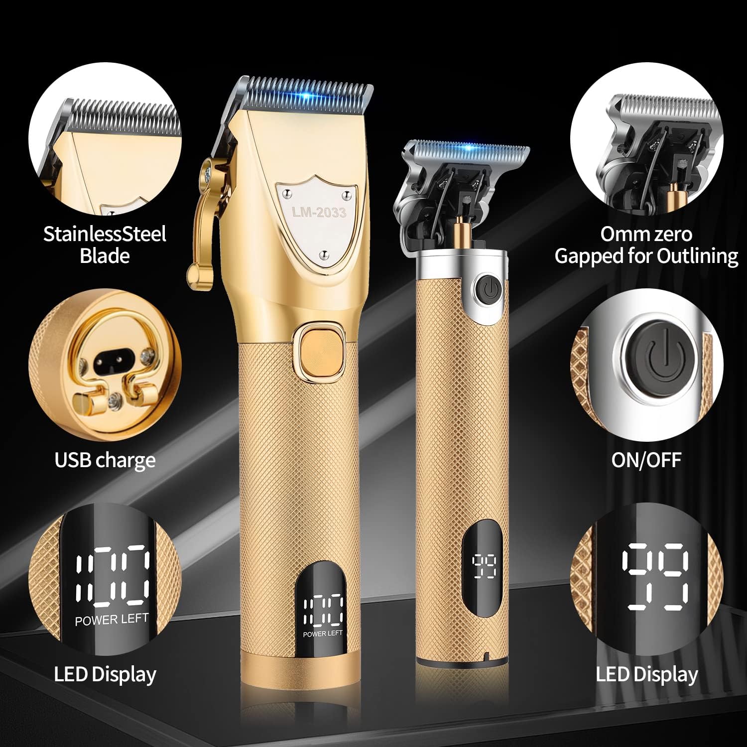 Roziapro Tondeuse Draadloze Baard Trimmer voor Mannen Professionele Kapper Tondeuse T Blade Trimmer voor Mannen Oplaadbare Tondeuse Verzorging Kit Elektrische Haar Snijset (Goud)