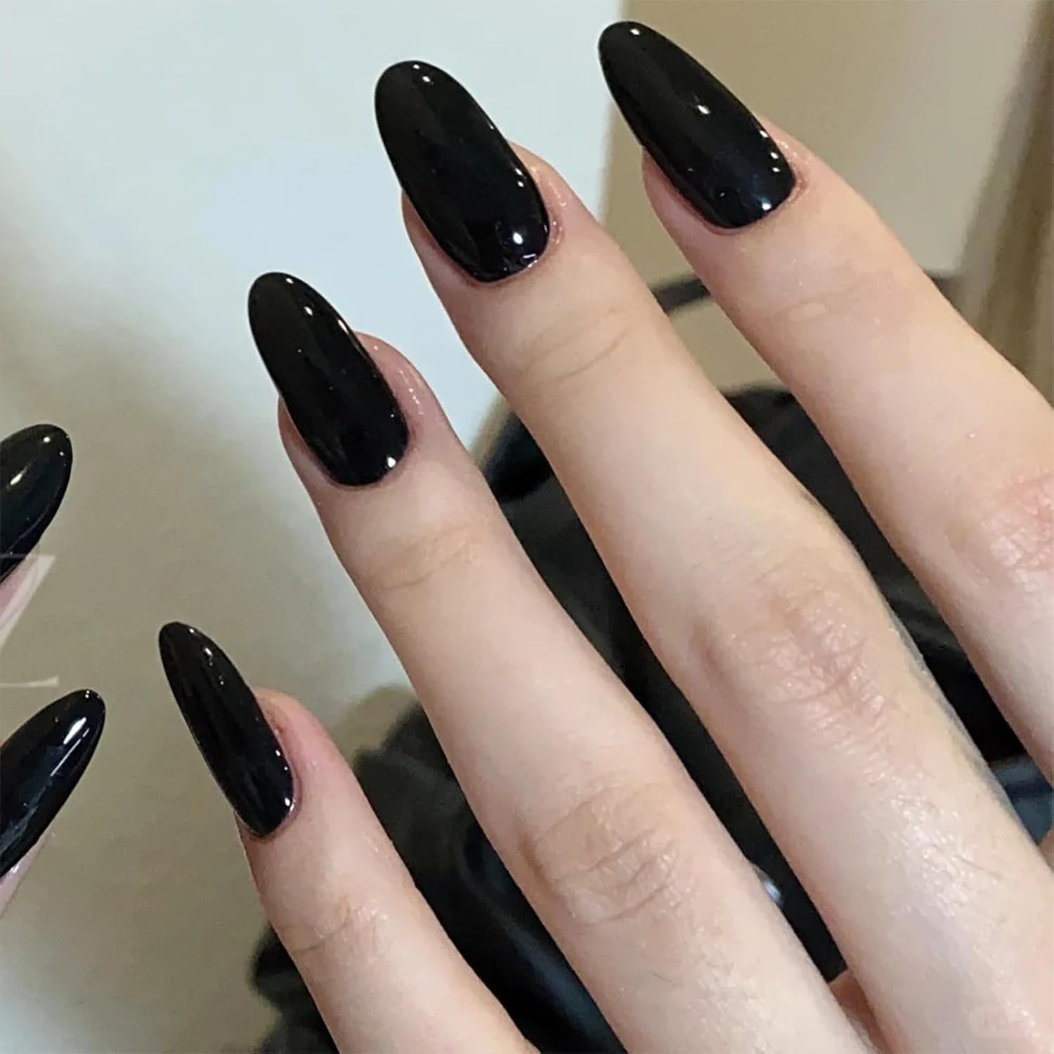 Ruzister Pack of 24 Short Oval False Nails Almond Fake Nails Glue on Nails Acrylic Press On Gel Nails False Nails Short Black
