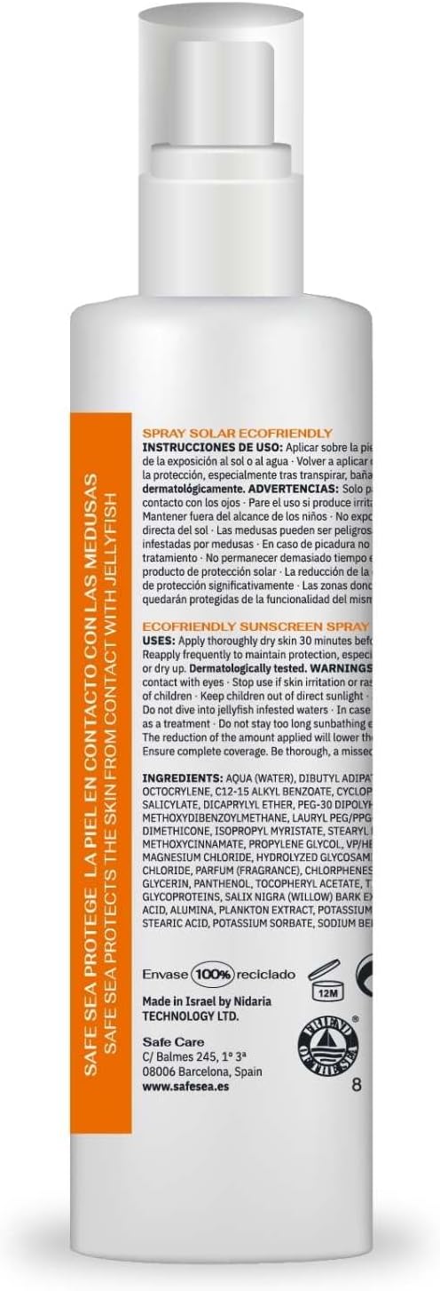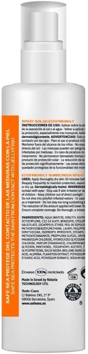 SAFE SEA – Jellyfish Sting Sun Spray SPF 50 – Veganistische formule – Zeer waterbestendig met hoge zonbescherming voor kinderen – Ingrediënten Geschikt voor de gevoelige huid – 100 ml Formaat