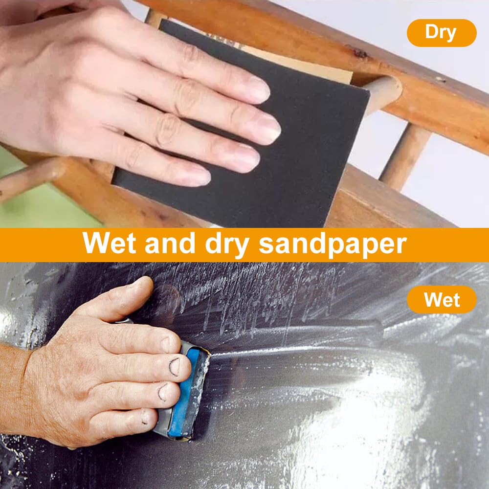 Wet and dry: the lubricating paper is easy to sand by hand and put on the sanding block, you can use water sandpaper to gently clean objects. Waterproof sandpaper can be used with water, varnish, insect spray, varnish or oil, and it does not slip easily or move during use.