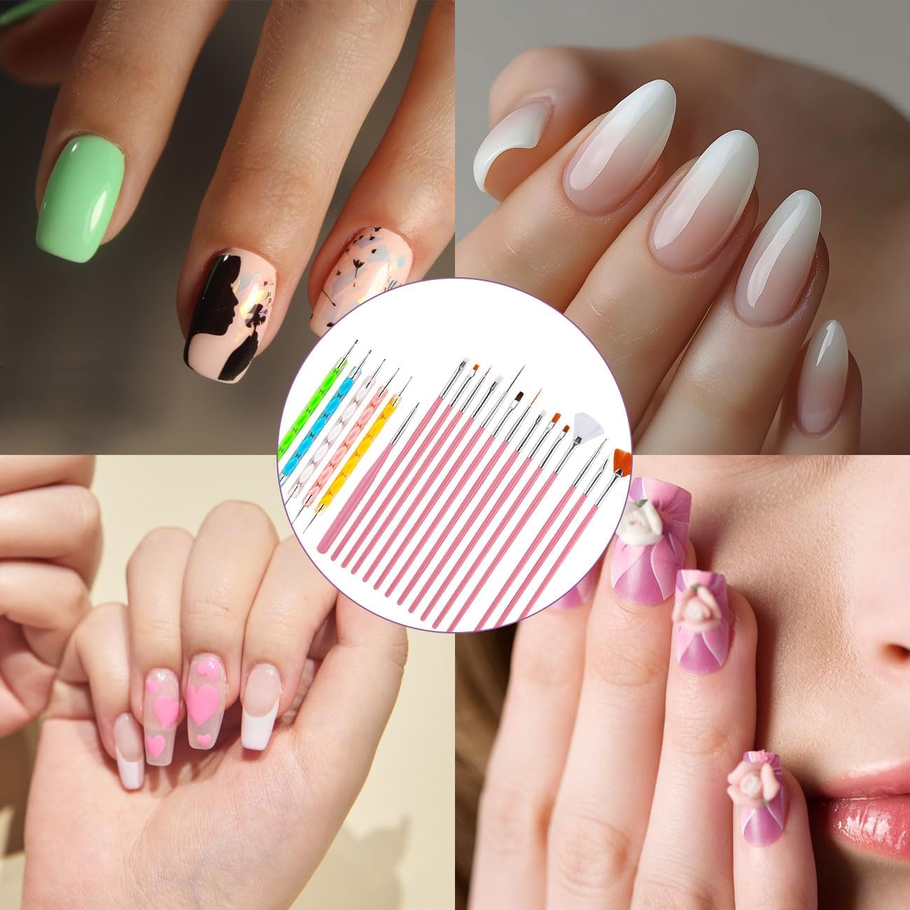 Breed toepassingsgebied: Deze Nail Art Design Drawing Tools zijn ontworpen voor universeel gebruik en bieden intuïtieve bediening voor beginnende gebruikers, terwijl ze voldoen aan de normen van salons. De ergonomische handgrepen en evenwichtige gewichtsverdeling zorgen voor een stabiele controle voor delicate streken – perfect voor doe-het-zelvers thuis of technici.