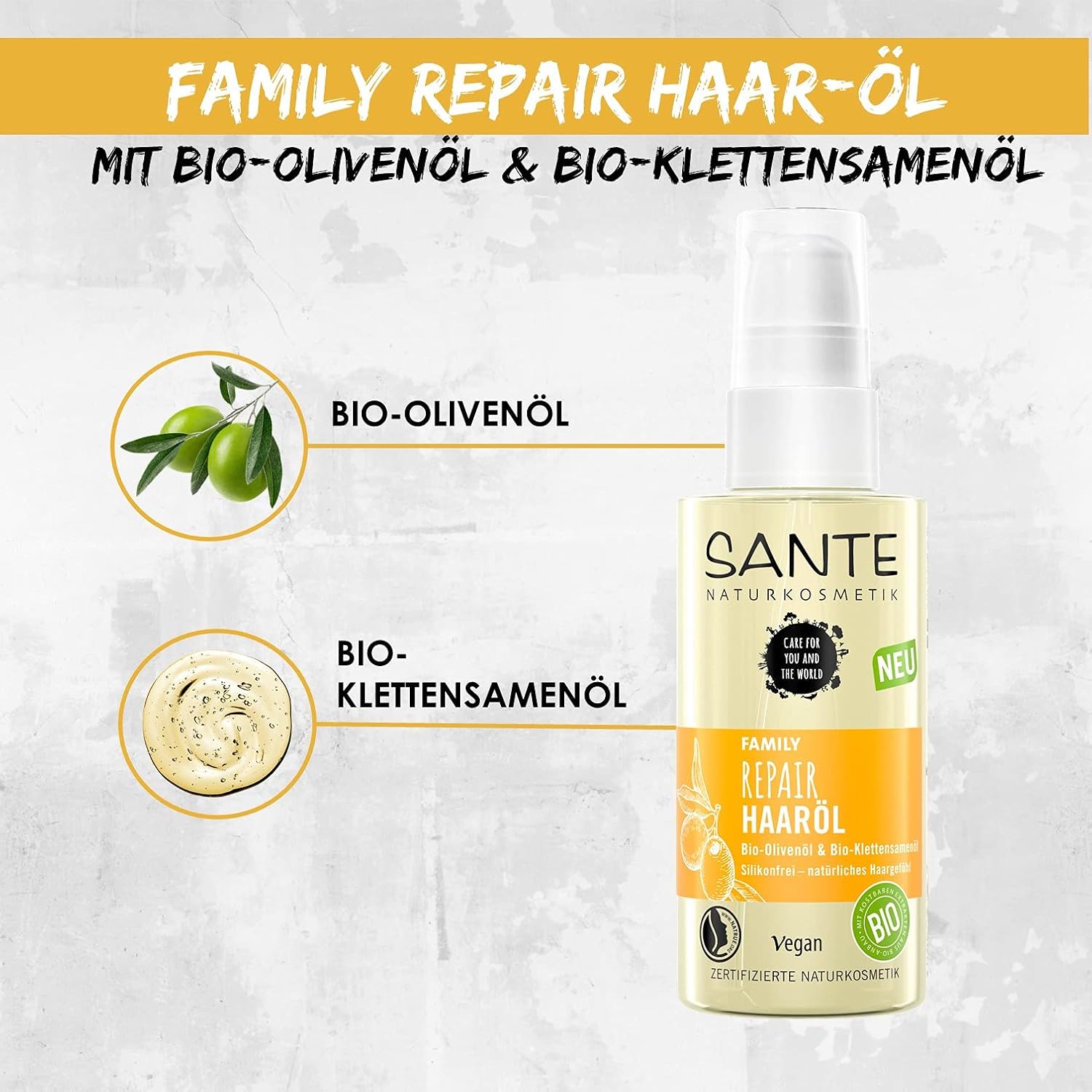 SANTE Naturkosmetik Family Repair Reparerende haarolie voor het hele gezin, veganistische formule met biologische olijfolie en kliszaadolie, 1 x 75 ml