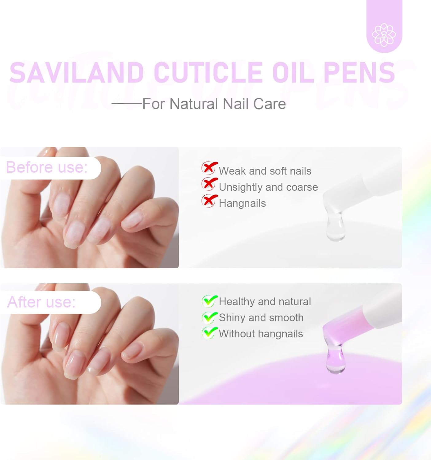🍉Natuurlijke plantenformule en duidelijk effect – Saviland nagelriemolie is gemaakt van natuurlijke en gezonde plantaardige ingrediënten, niet giftig, goede geur en veganistisch en dierproefvrij, goed voor je droge en zwakke nagels.