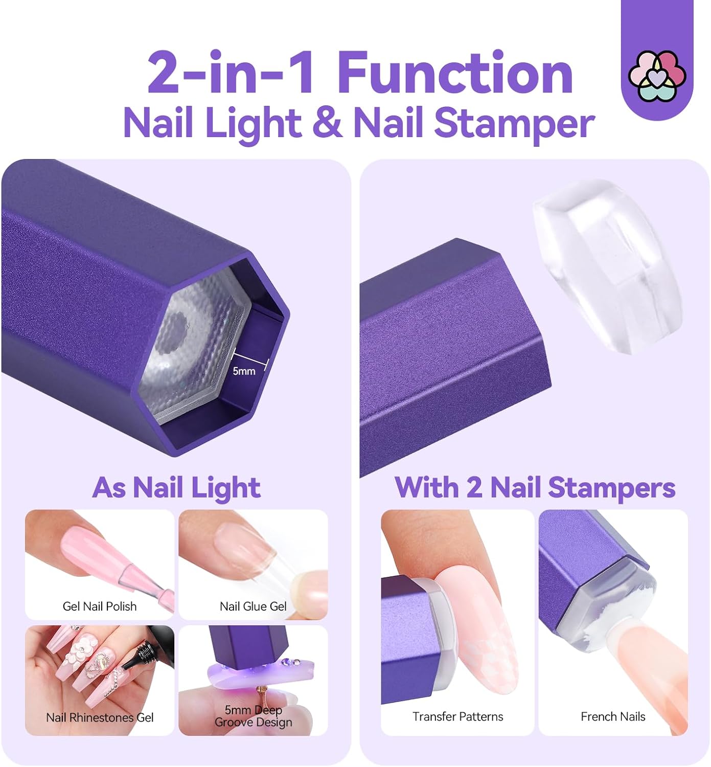 Saviland 2-in-1 UV-Nagellamp & Nagelstempel: Kleine Oplaadbare LED-Lamp Met Magnetische Standaard – Mini Handheld UV-Zaklamp Voor Gelnagels