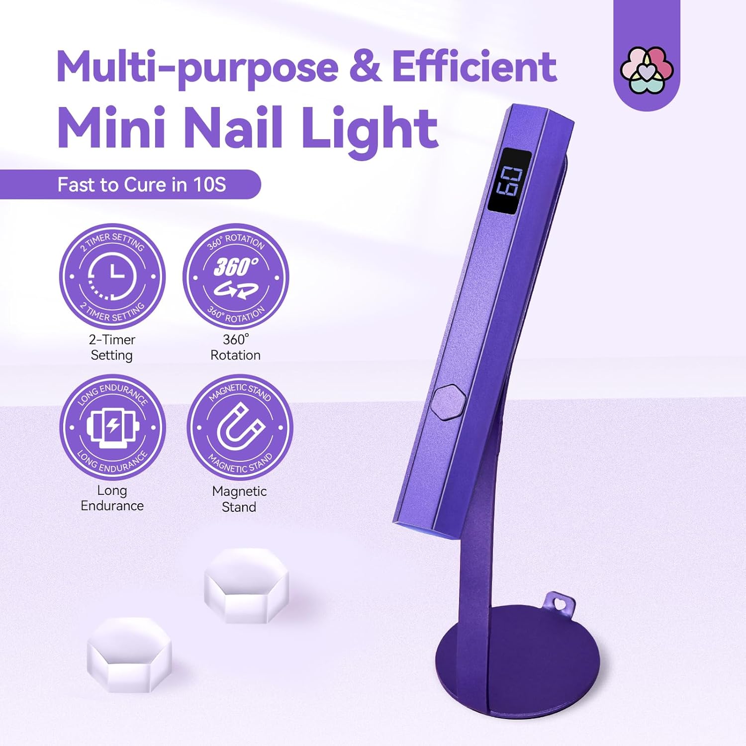 Magnetische antislip standaard voor een hoek van 360 graden: onze mini-led-nagellamp is uitgerust met een magnetische antislip nagelstandaard. Je kunt de hoek 360° instellen om de nagelkunstmanicure in alle richtingen te harden en tegelijkertijd je handen vrij te laten. Daardoor wordt het verlichtingsproces efficiënter en eenvoudiger te bedienen.