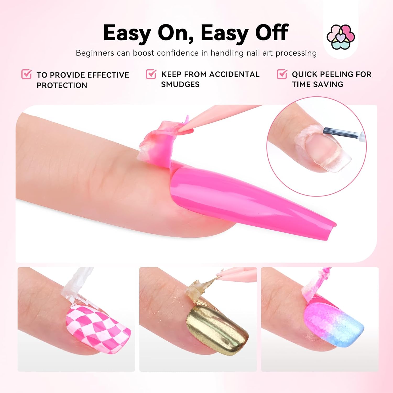 Verbeterde Latextape – Saviland latextape is een sneldrogende vloeibare nageltape of latexnagellakbarrière die de nagelriem beschermt tegen de puinhoop van nail art-toepassingen zoals marmeren, verlopen, nagellakken, Franse manicures, stempelen en vele andere soorten manicures.