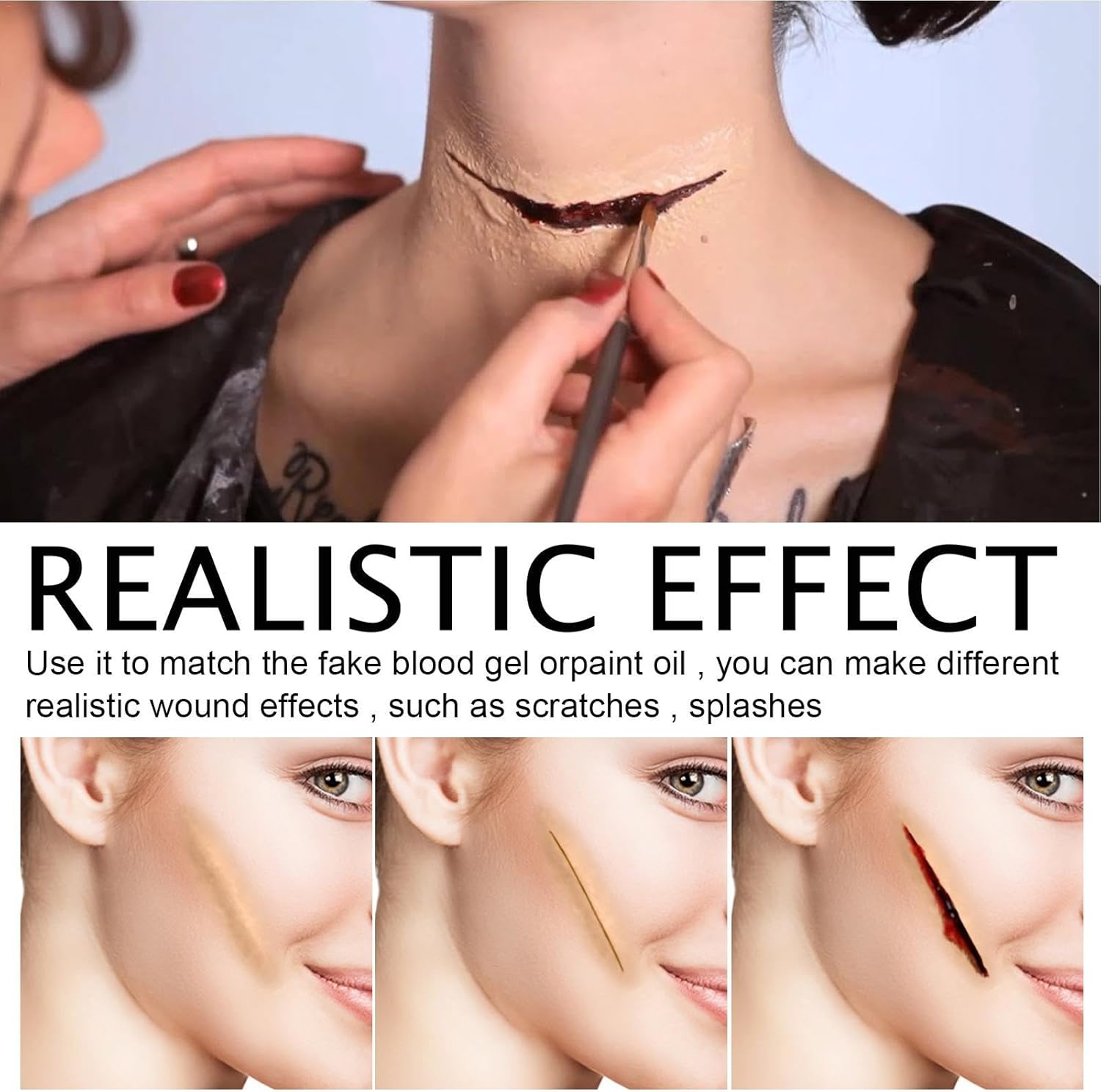 【Uitgebreid gebruik】: littekenwas en nepbloedgel zijn geschikt voor Halloween-feesten, festivals of tv-shows, speciaal effect, maskerades, carnaval, alledaagse grappen, enz.