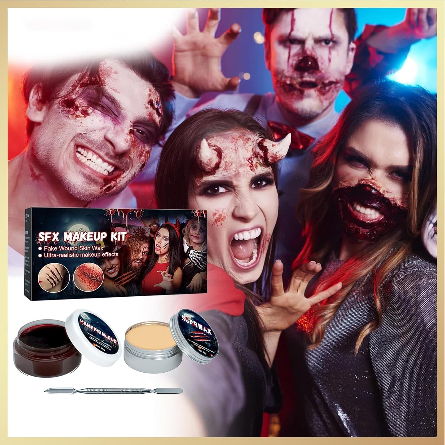 Scar Wax SFX Make-up Kit – Halloween Make-up Kit | Halloween Cosplay Zombie Vampier Special Effectss Make-upset met schraper | Litteken Wax Kit | Fake Blood Gel Make-upkit voor het maken van krassen