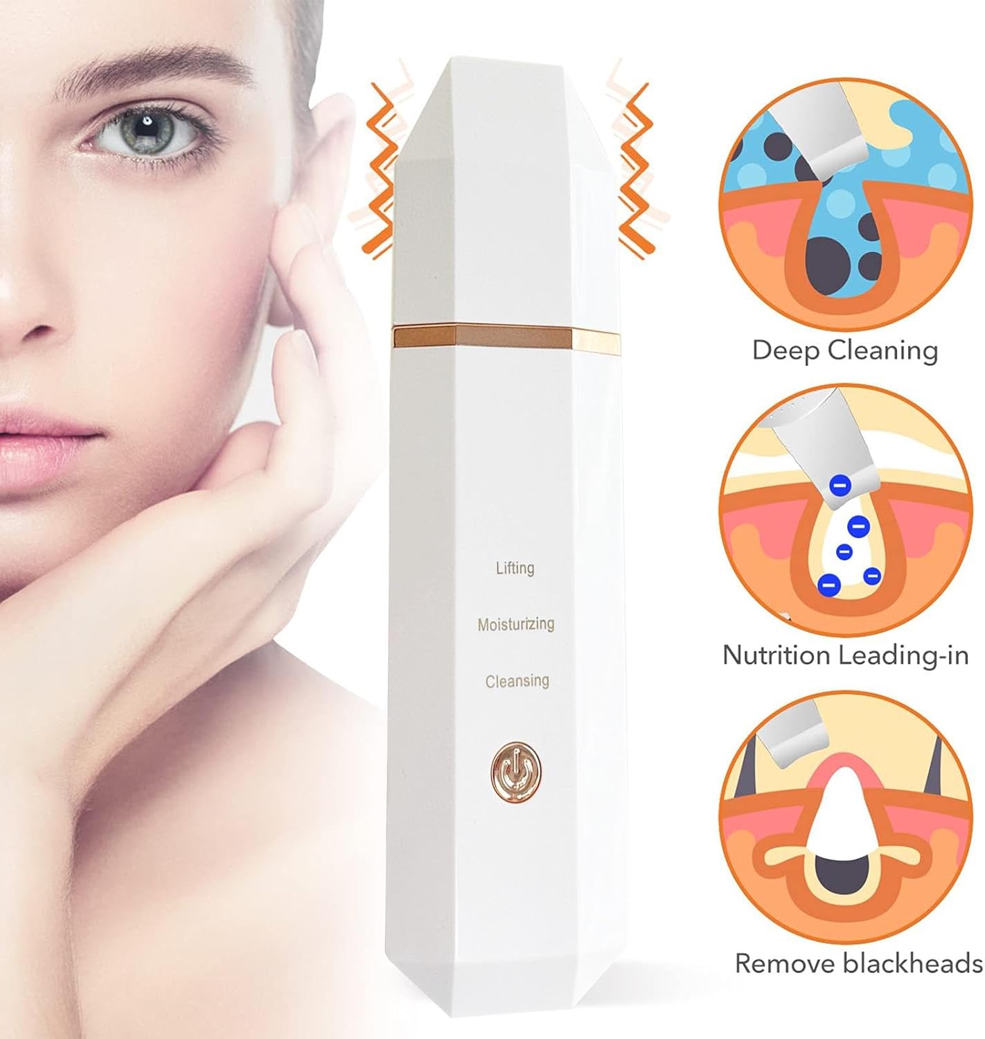 Ultrasone huidscrubber: verwijdert effectief mee-eters, witte koppen en dode huidcellen met hoogfrequente trillingen, bevordert een gladder, helderdere huid voor een verfrist uiterlijk en een gezonde teint.