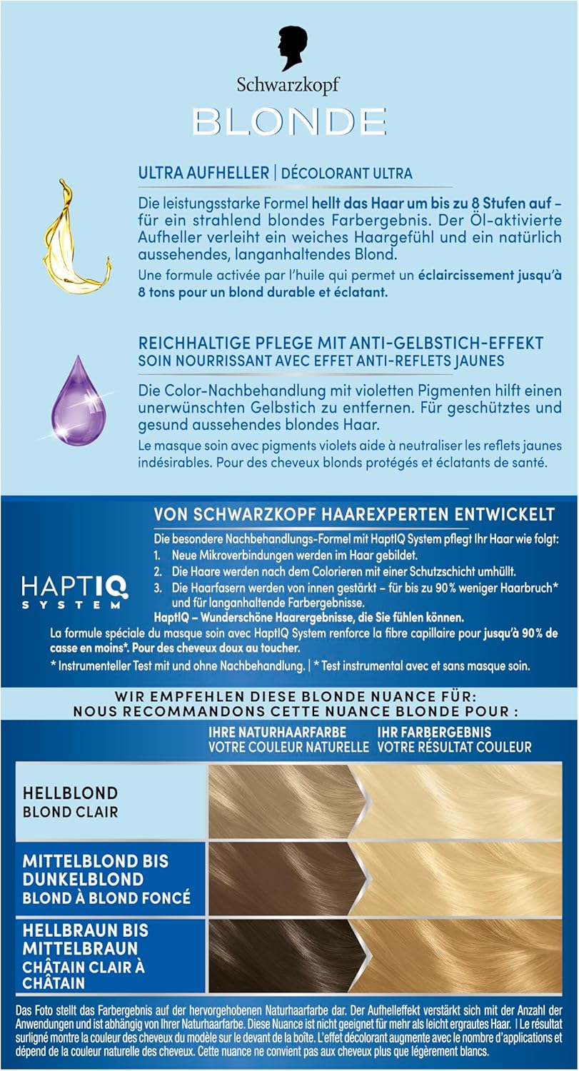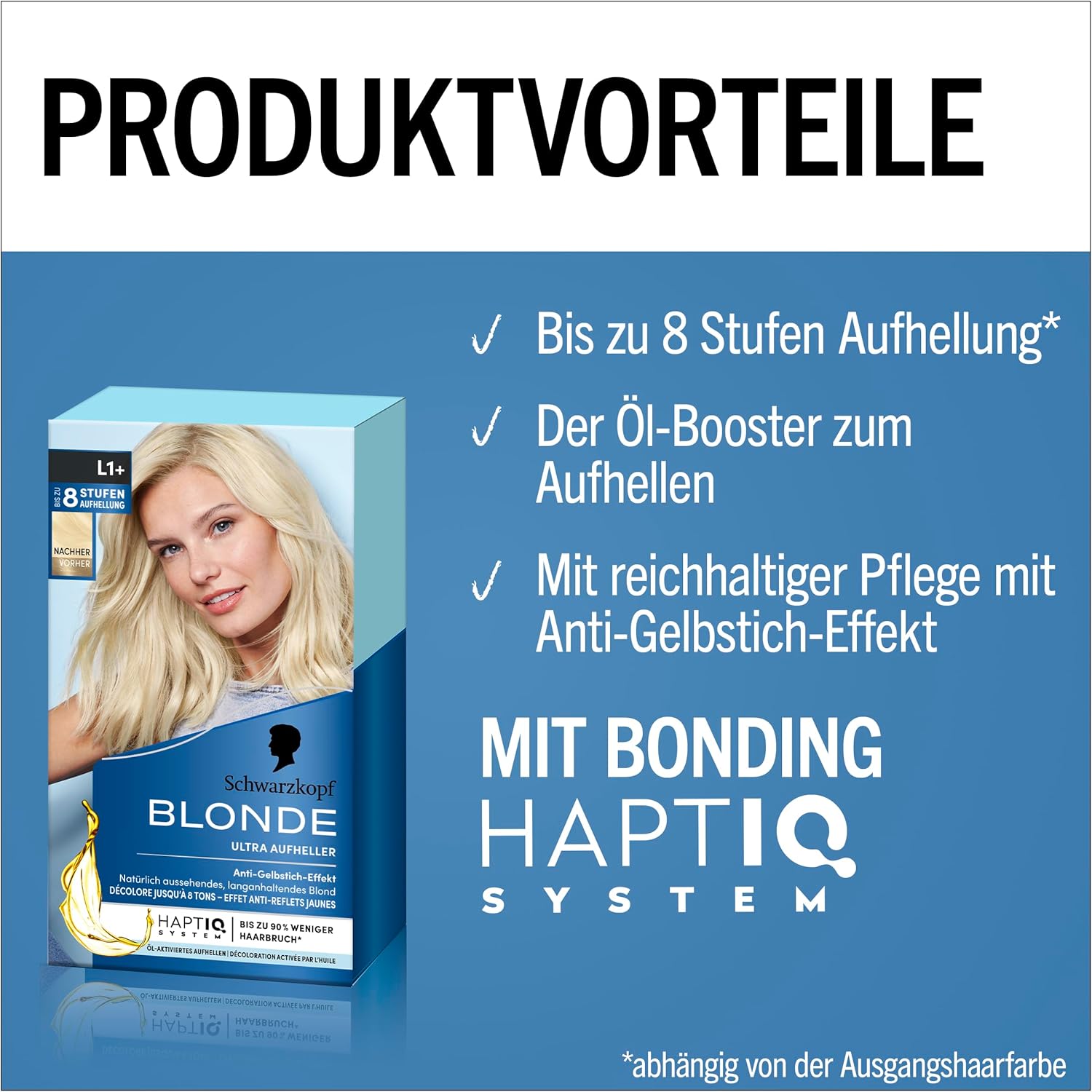Schwarzkopf Blonde L1+ Whitender, 143 ml, Hair Dye for Oil-Activated Hair, Lighten with HaptIQ System, for Up to 8 Levels Lightening without Yellowness