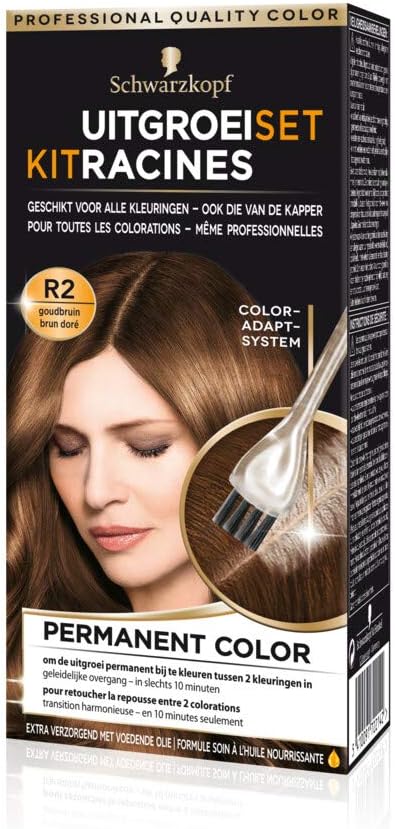 Great product to always have at home. Everything for peace & health. Easy to use. Discover the easy way to quickly treat outgrowths between two colorings. With schwarzkopf outgrowth set, the outgrowth is permanently coloured in just 10 minutes. The unique ‘color-adaptation system’ gradually transitions with your current hair colour and matches all colourings, including those of the hairdresser. In addition, the formula contains a nourishing oil to provide extra care for the hair. Suitable for golden brown nuances. This outgrowth set is suitable for dark brown nuances. The final colour result is partly determined by the exposure time. Package contents 1 tube colour cream 1 bottle of development emulsion 1 mixing bowl 1 paint brush 1 pair of gloves 1 instruction manual – gradual transition – in just 10 minutes – suitable for all colorings – extra nourishing with nourishing oil