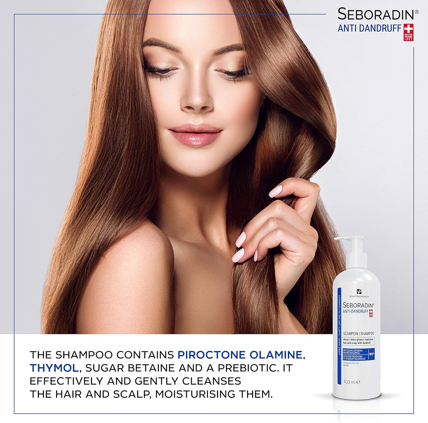 Seboradin Anti-Dandruff anti-roos shampoo, haarshampoo voor haar en hoofdhuid met roos, haarkuur, intensieve haarverzorging, voor dames en heren, tegen roos, met piroctone omlamine en thymol, 400 ml