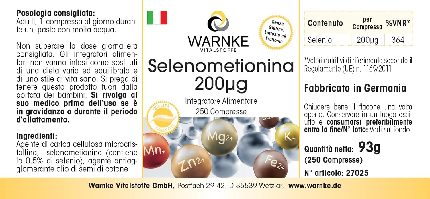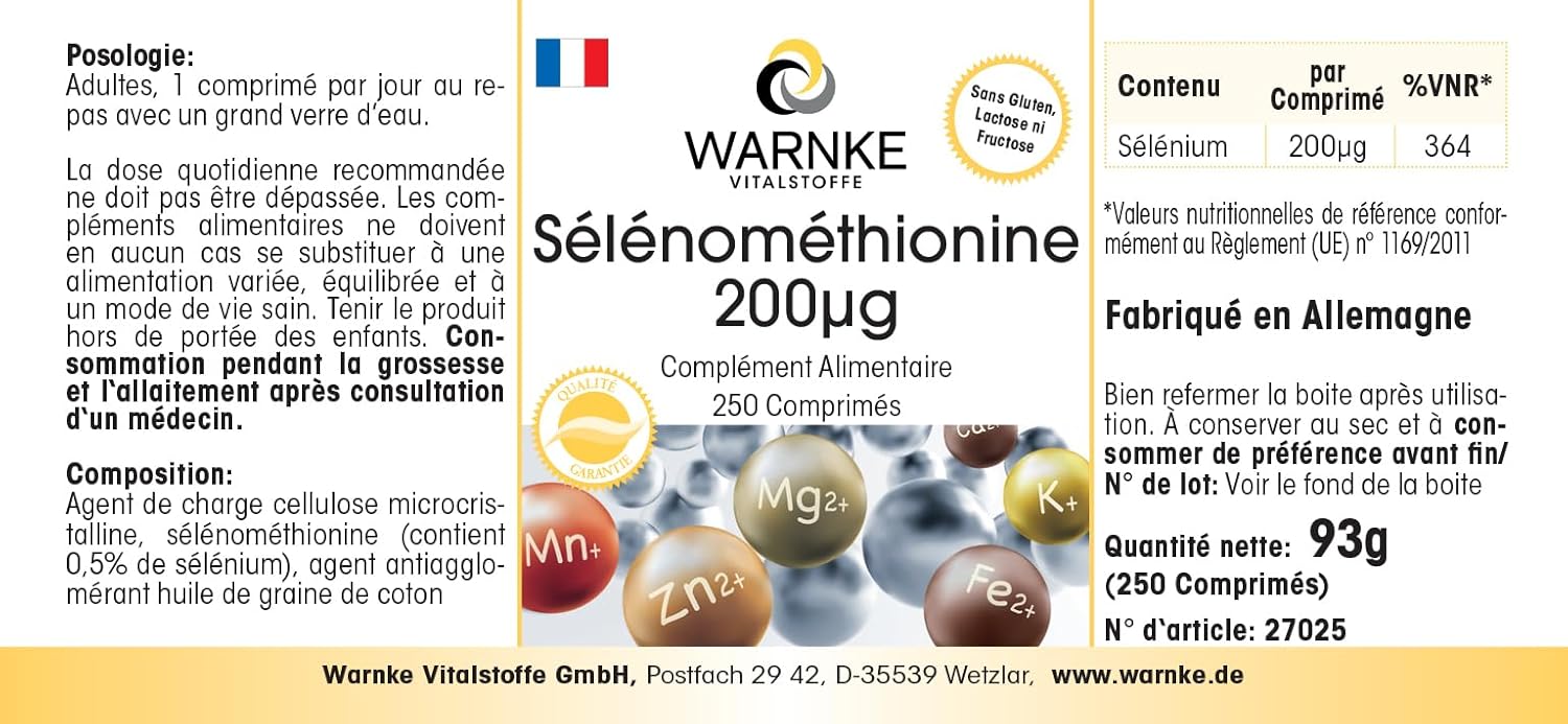Selen-Tabletten – 200mcg – Selenmethionin – vegan – 250 Tabletten | Warnke Vitalstoffe – Duitse apothekerskwalitei