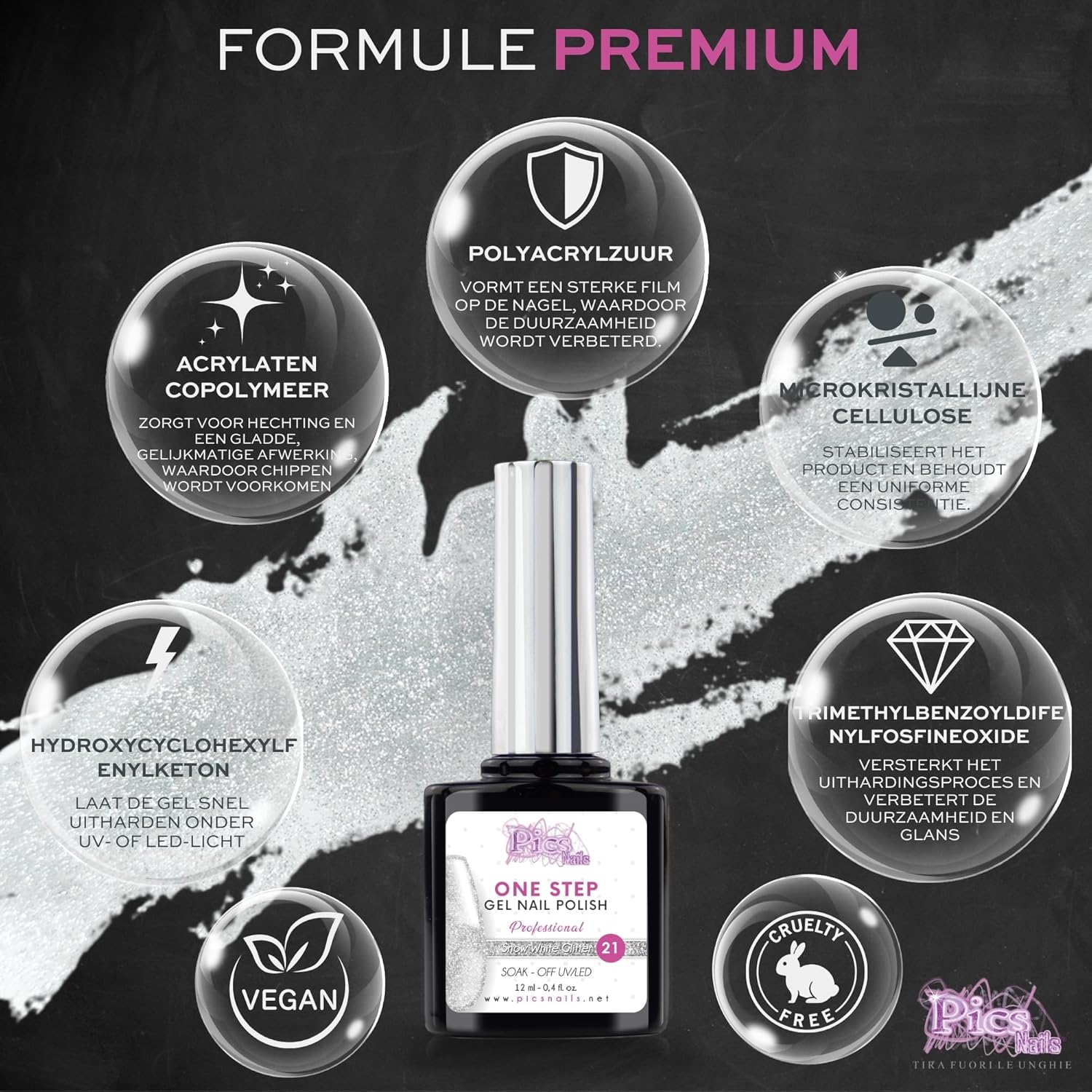Semi-Permanent UV/Led Nail Polish One Step 12ml – Snow White Glitter – Semi-Permanent Shiny Nails – In Seconds with or without Base and Top Coat