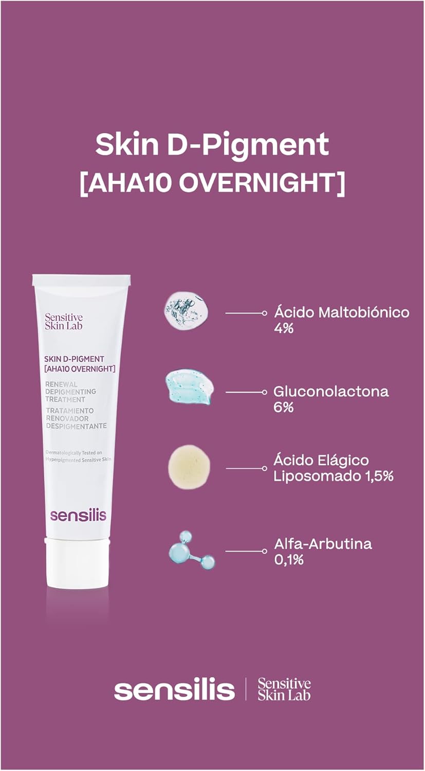 SENSILIS SKIN D-PIGMENT AHA10 Overnight CREAM | SPIGMENT CREAM | Vlekwerend middel | 30 ml