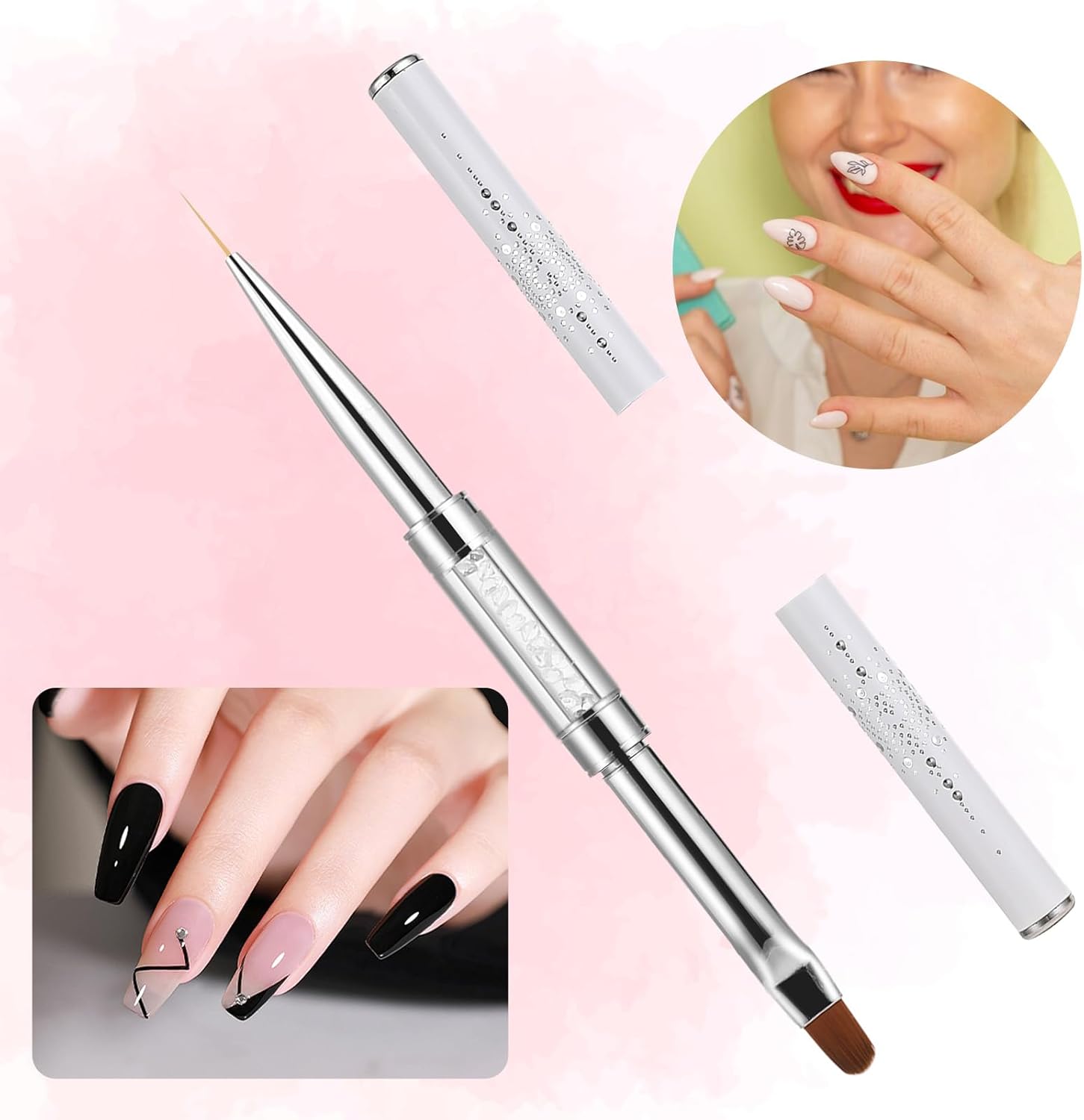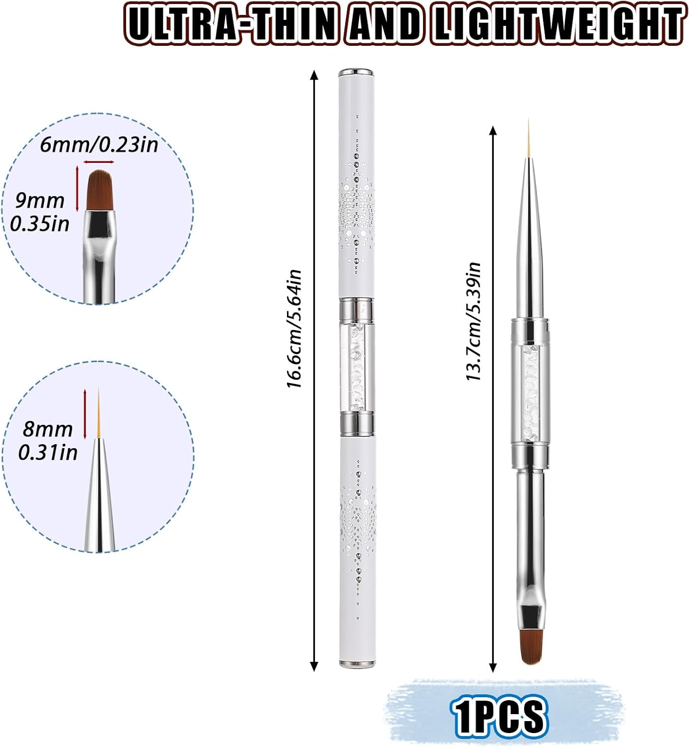 Set van 2 penselen met twee uiteinden voor gelnagels, 2 in 1 nagelborstel, gelborstel voor nagels, nail art borstel, fineliner gelborstel, borstel en spatel (wit)