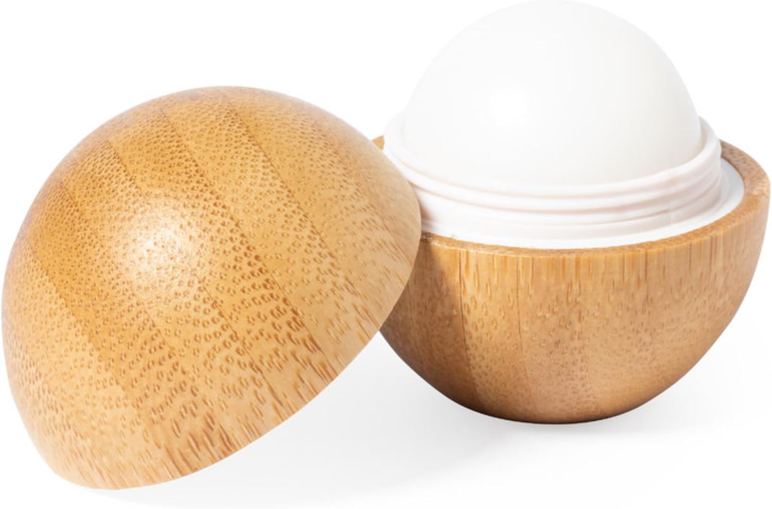 Natuurlijke lippenbalsem in een ronde houder van bamboe. Dermatologisch getest. SPF10. Aroma: vanille. Bamboe is een natuurlijk product, er kunnen daarom lichte afwijkingen in kleur, decor en afmetingen optreden.