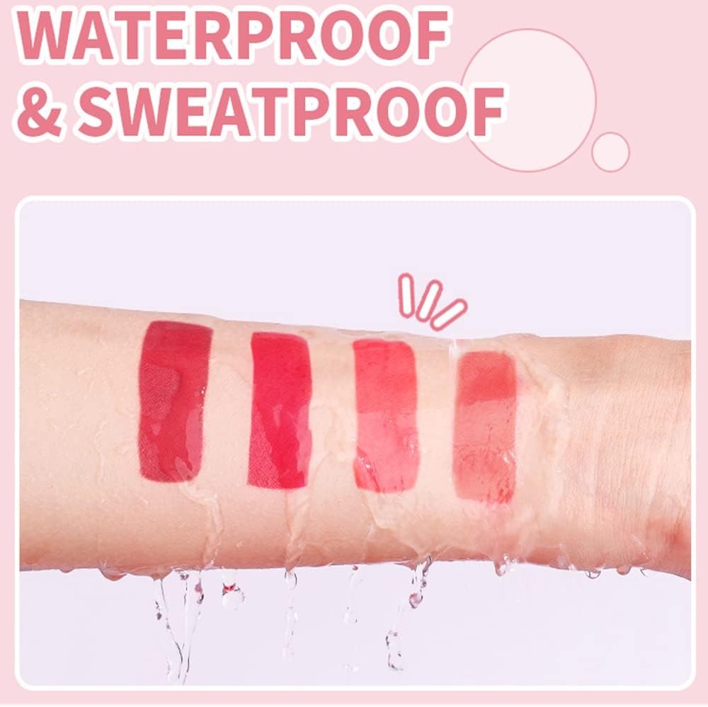 Set van 4 kleuren, hydraterende, vochtinbrengende, matte vloeibare lippenstift, lipgloss, langdurige non-stick cup lipmake-up voor wangen en ogen