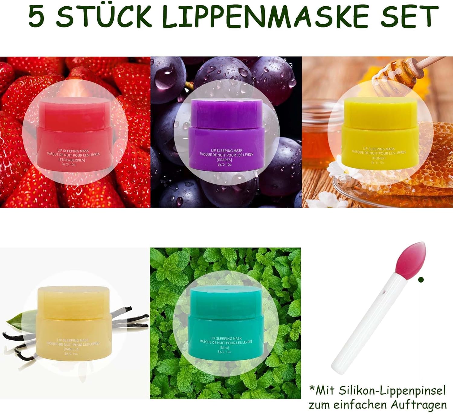 Set van 5 hydraterende lippenmaskers, verzorgende lippenbalsem-set, voedende lippenverzorging voor het lichter maken van liprimpels, voor gehydrateerde, volle en onweerstaanbare lippen