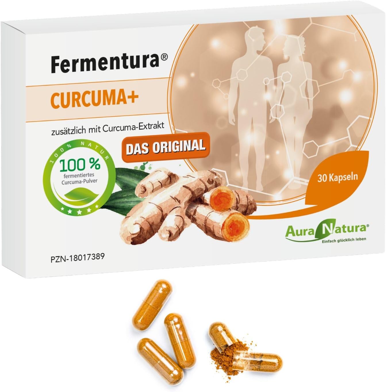 Waardevol recept: Fermentura Curcuma Plus van AuraNatura combineert 550 mg gefermenteerd curcumapoeder met 140 mg curcuma-extract (waarvan 133 mg curcuminoïde) in één capsule