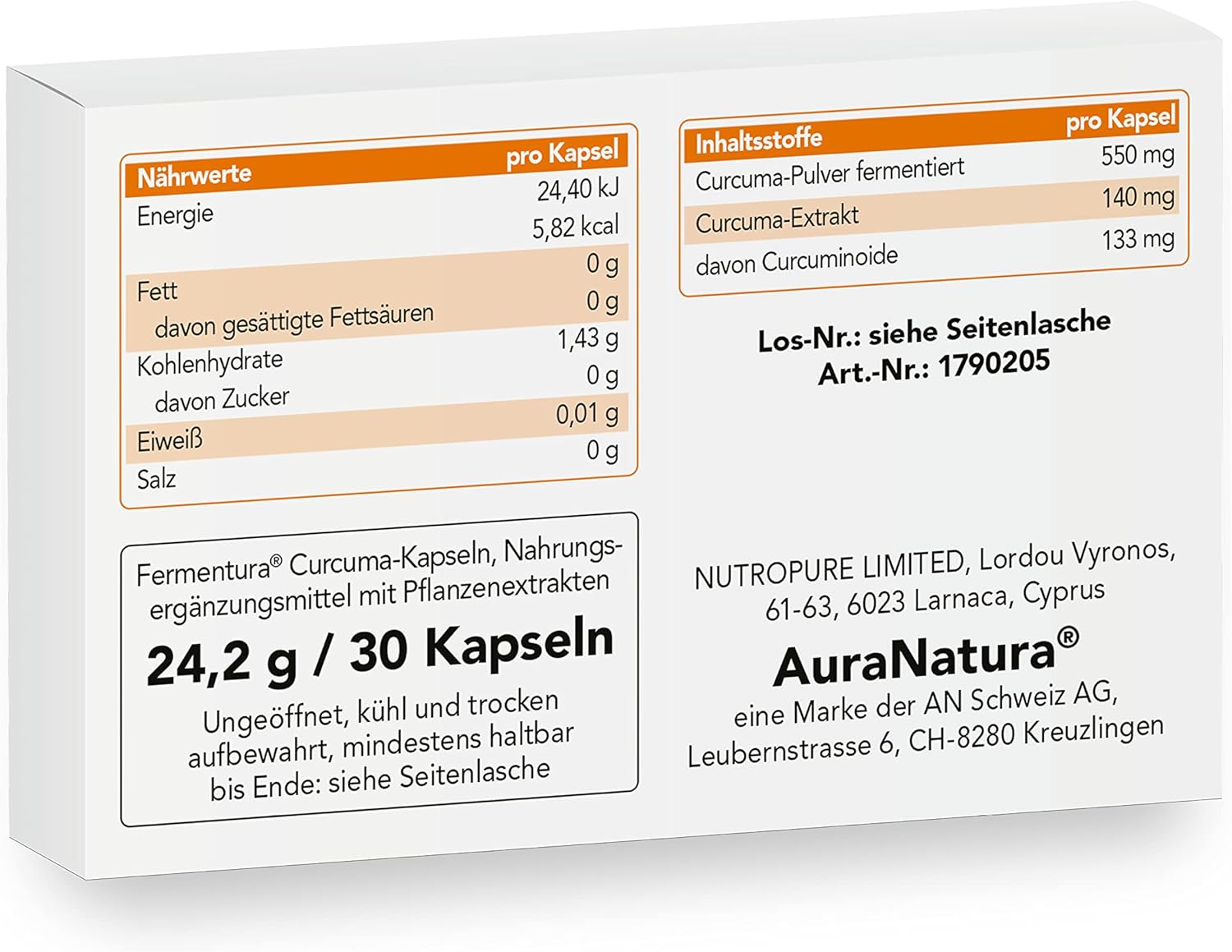 Waardevolle formule: Fermentura Curcuma Plus van AuraNatura combineert gefermenteerd curcuma poeder (550 mg) met curcuma-extract (140 mg) in een capsule. De kurkuma gefermenteerde capsules bevatten waardevolle curcuminoïden. Curcuminoïden zijn secundaire plantaardige stoffen en behoren tot de biologisch actieve ingrediënten van de curcuma-plant. De belangrijkste curcuminoïde genaamd curcumine is een natuurlijke antioxidant. Het natuurlijke curcuma-poeder is veredeld door fermentatie. Om moderne, actieve mensen van vitale elementen te voorzien, letten wij op de juiste combinatie van werkzame stoffen – premium voedingssupplement van AuraNatura. Je ontvangt gefermenteerd curcuma-poeder en curcuma-extract zonder ongewenste additieven. De veganistische capsules zijn vrij van genetische manipulatie, lactose, gluten en gelatine. Gewoon gelukkig leven – hoogste kwaliteit bij AuraNatura – want je gezondheid is je hoogste goed! Wij willen dat je gewoon gelukkig leeft, tot op hoge leeftijd! Wij staan voor je klaar.