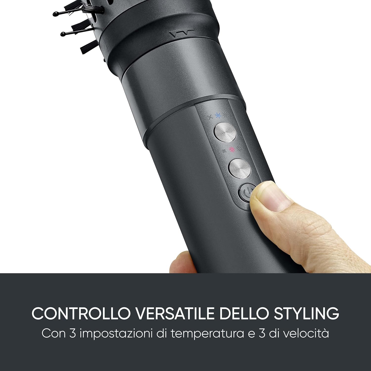 Temperatuurinstelling: drie instelbare temperatuur- en snelheidsniveaus van de föhnborstel leveren op maat gemaakte resultaten, terwijl de Cool Shot-functie de look fixeert en de finishing touch geeft