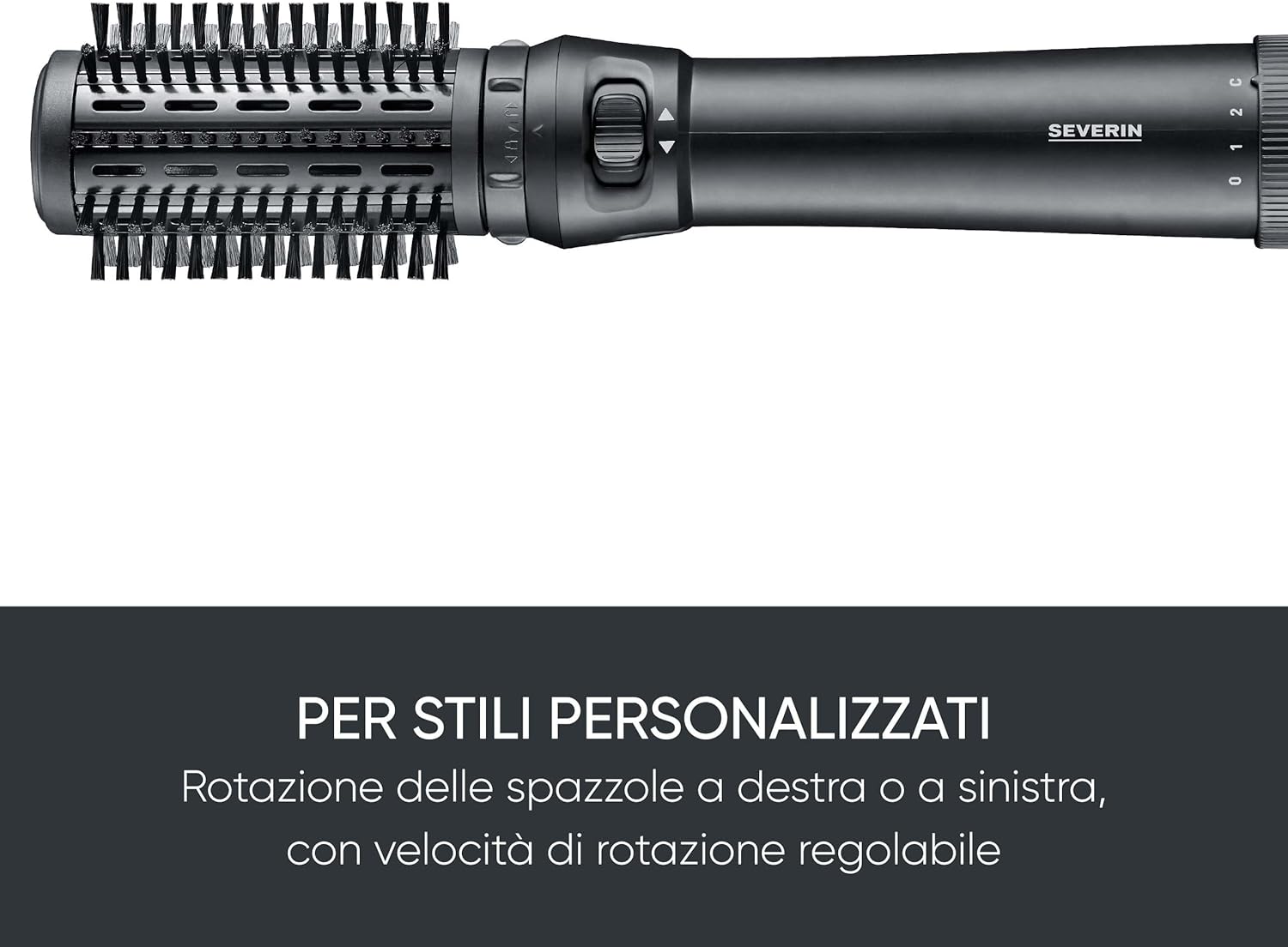 SEVERIN WL 0241 Warmeluchtborstel, zelfdraaiend, stylingborstel met innovatief 360°-kabelgewricht, 2 opzetstukken, keramische keratine-coating voor gezond en glanzend haar, 1000 W, mat zwart
