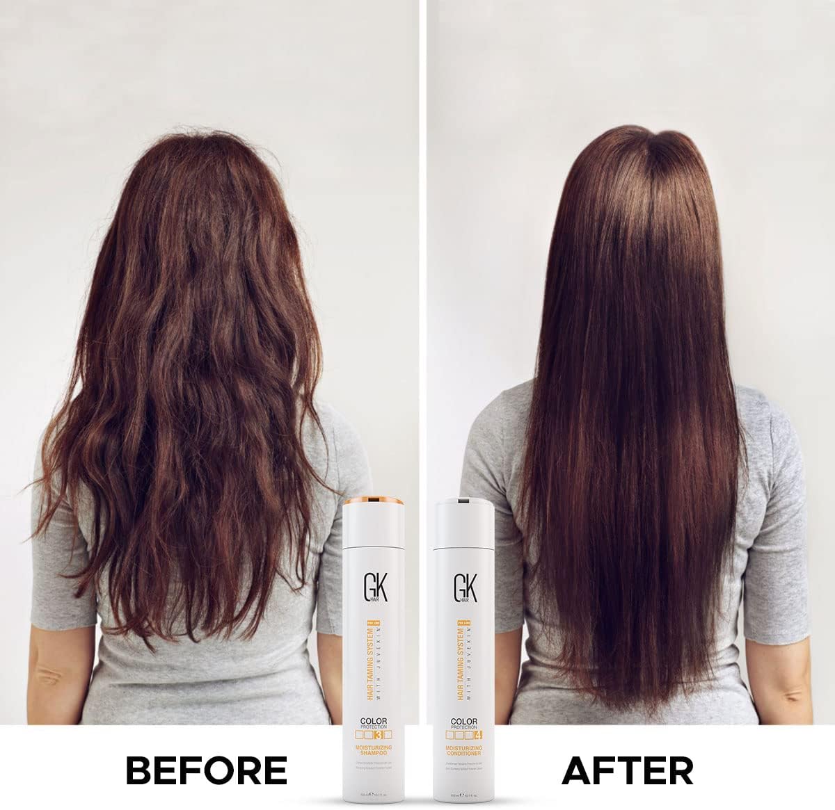 NATUURLIJKE INGREDIENTEN : GK Hair shampoo en conditioner set die werkt voor alle haartypes. Shampoo en conditioner zijn doordrenkt met keratine-eiwit, waardoor het haar gehydrateerd en zacht wordt. Minder vatbaar voor breuken, gespleten haarpunten en dunner wordend fijn haar door het absorberen van essentiële voedingsstoffen en vitamines.