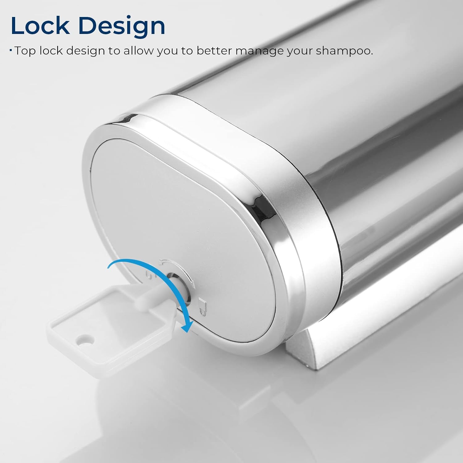Eenvoudig te installeren: de shampoodispenser wordt geleverd met schroeven en nagelvrije lijm, de installatiemethode van ponsen of geen boren muurbevestiging; Je kunt hem aan de muur bevestigen met de meegeleverde niet-markerende sticker, slechts 5 minuten is voltooid, stabiel en duurzaam. Topslotontwerp om je shampoo beter te beheren.