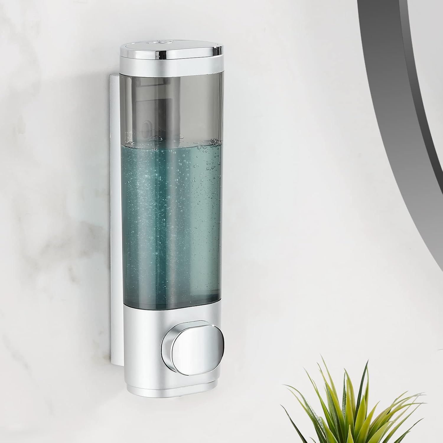 Shampoo en Conditioner Dispenser, modunful Douche Dispenser 1 Kamer Geen Boor Shampoo Dispenser voor Douche Wandmontage Shampoo Conditioner Body Wash Dispenser voor Badkamer, Grote Capaciteit, Zilver