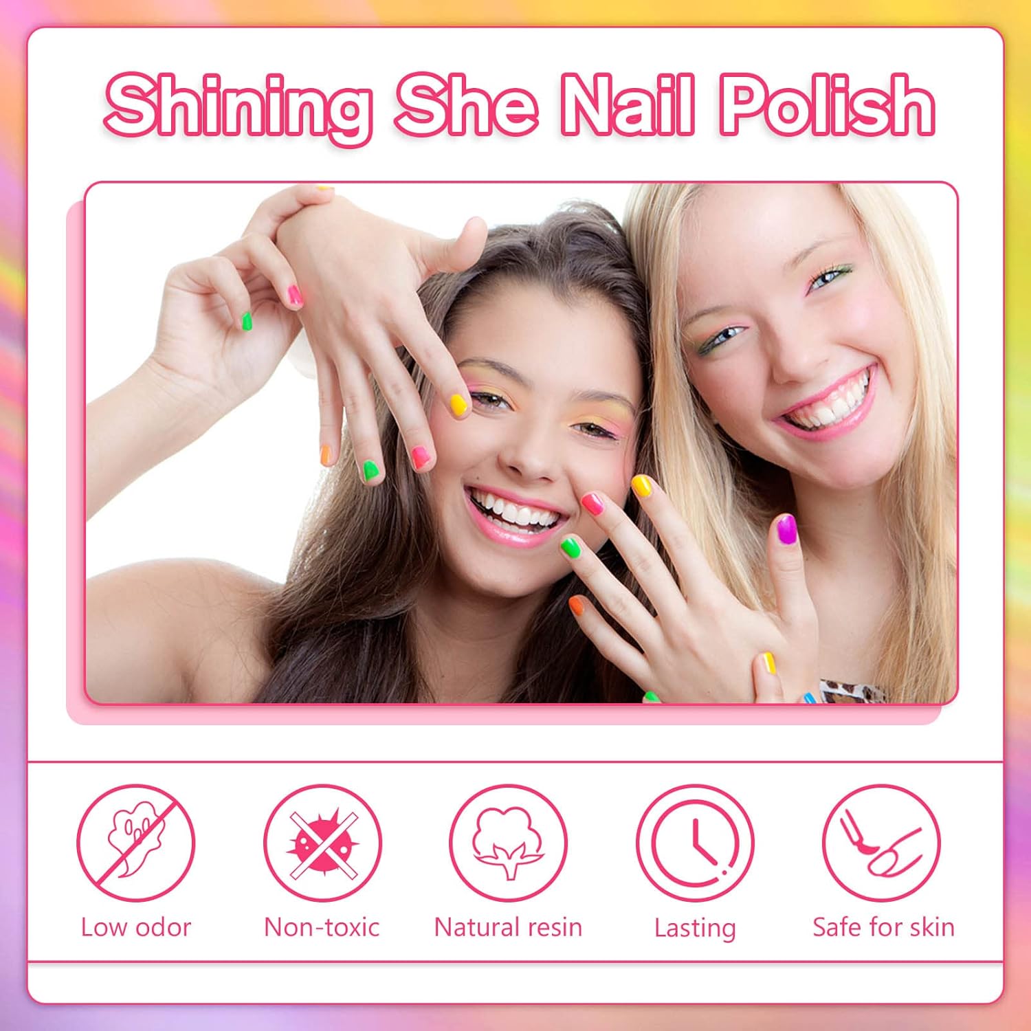 Natural material: Shining She nail polish is made of 100% natural resin, healthy, friendly, safe, non-toxic and odourless, does not damage nails and skin and use with confidence.