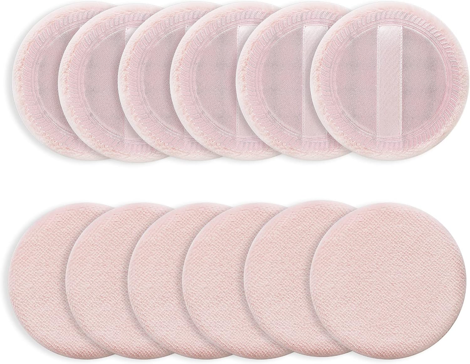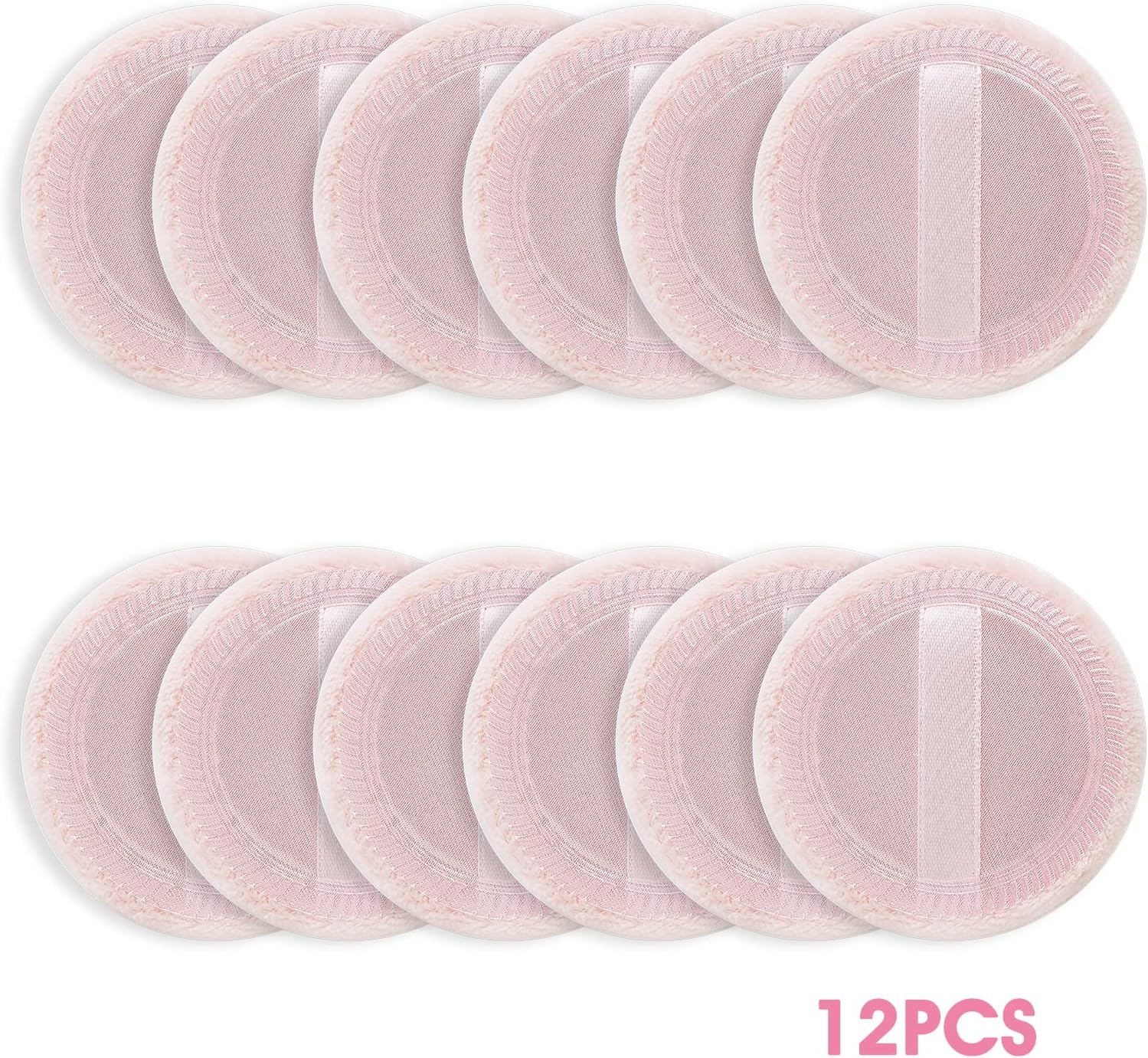 Sibba 12Pcs Loose Powder Puff Pink Cotton Pads Face Body Makeup Velor with Ribbon Applicators Setting Round Makeup Eyeshadow Concealer Cosmetics Sponge